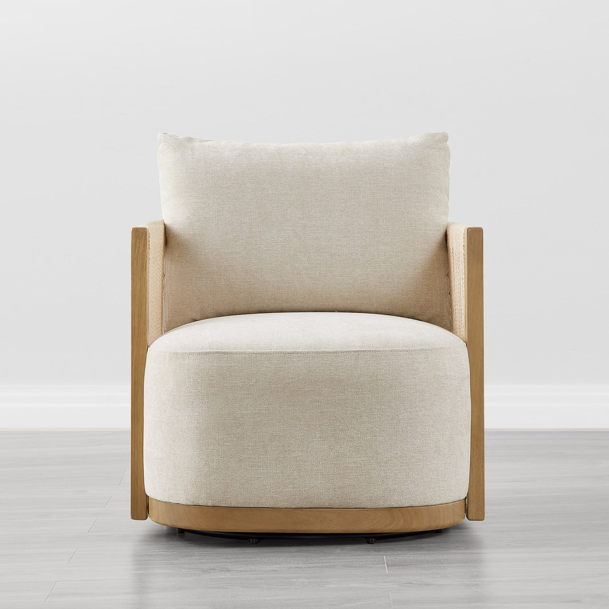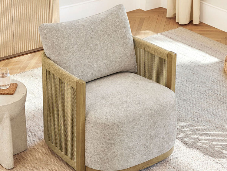Blending natural artistry with effortless, everyday comfort. The Carl Chair pairs a hand-woven paper cord seat with a softly curved wooden frame, radiating an easy boho charm. Its hidden 360° swivel base keeps movement smooth and graceful, while the dual-support suspension and plush chenille cushion invite you to linger a little longer. Made with kiln-dried hardwood and OEKO-TEX® certified fabric, it’s an airy yet durable accent that complements any cozy corner or sunlit nook.