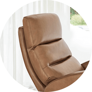 The Landon recliner, crafted from 100% genuine leather and full top grain leather, offers exceptional quality. Unlike standard genuine leather, full top grain leather is the highest quality layer of the hide, preserving its natural texture and showcasing every mark and imperfection as a symbol of its authenticity and craftsmanship.