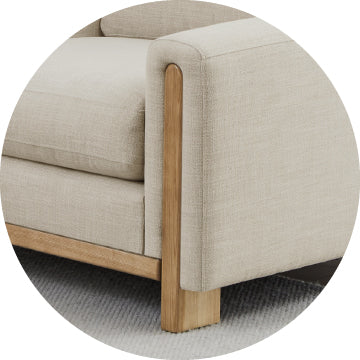 The Keaton Performance Sofa has a masterfully elegant silhouette, defined by its naturally warm-hued wood base that forms a harmonious H-shape. Inspired by Scandinavian design, its clean, sharp lines, contrasted against its gentle curves, offer a captivating visual balance that adds an organic feel to any space.