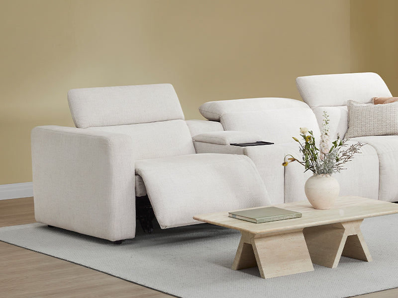 Oliver offers the perfect recline for your every need, whether you want to stretch out for a nap or find the ideal TV-watching position. At the touch of a button, you can adjust the headrest to provide personalized support for your neck and back, or activate the smooth, whisper-quiet reclining mechanism to ease into a comfortable angle.