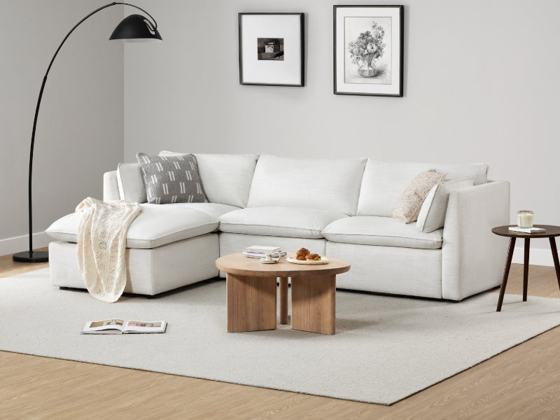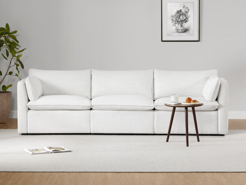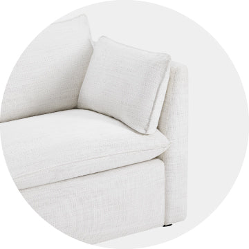 The modular pieces offer versatile configurations, easily rearranged to suit both cozy and spacious living areas, from family rooms to basement playrooms. For special gatherings, the armless chair can be pulled out as a standalone piece, seamlessly adapting to your needs.