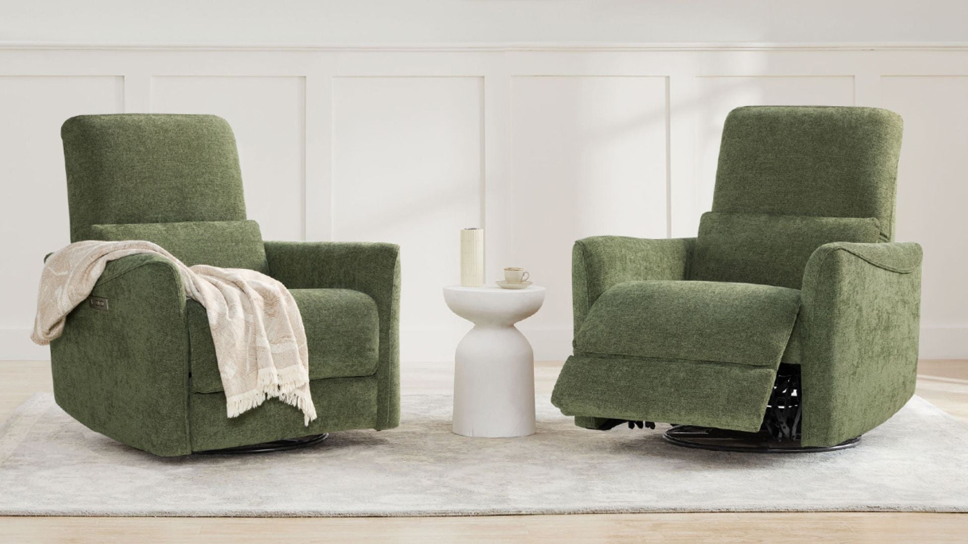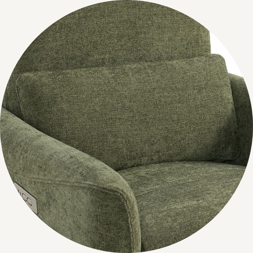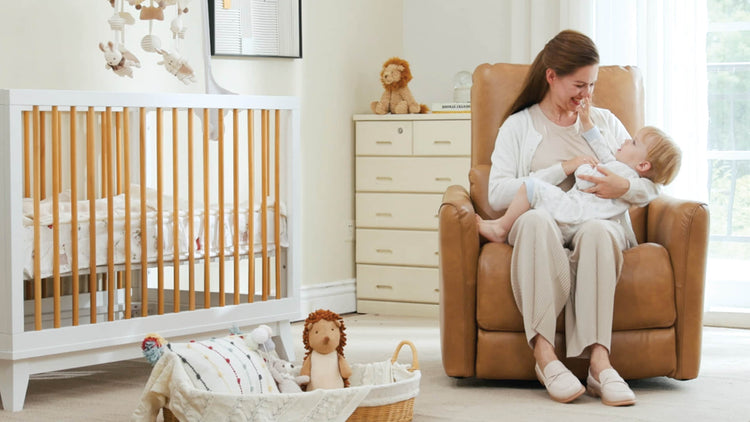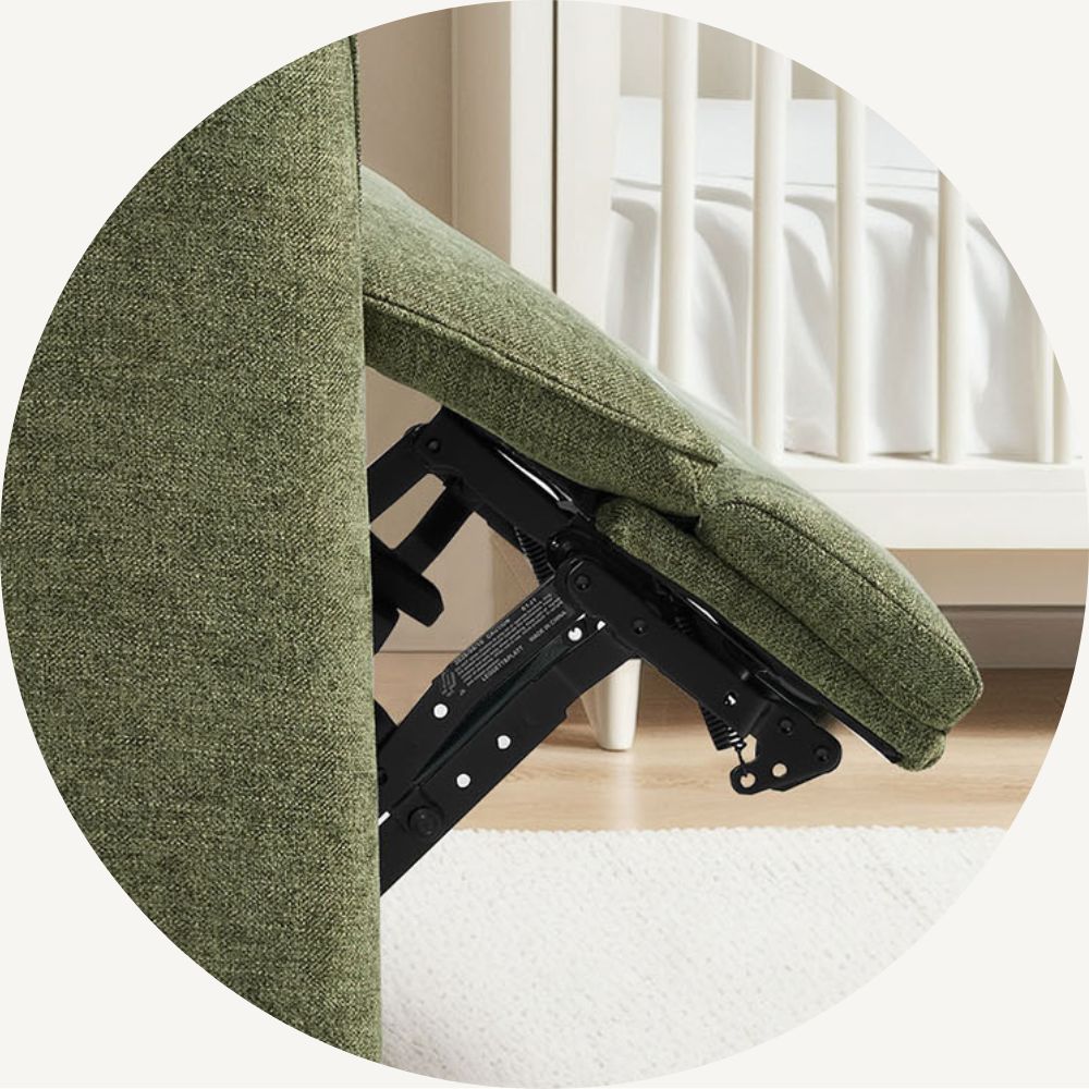 Designed with moms in mind, Tracee blends gentle motion, quiet power, and intuitive comfort. The 270° swivel and smooth gliding recline make every feeding or cuddle effortless, while the Leggett & Platt® mechanism ensures comfort that moves with you. Choose from soft OEKO-TEX® certified fabric for nursery comfort, or easy-clean faux and top-grain leather for refined family spaces. Built with eco-certified foam and wood, Tracee surrounds your family in cleaner air and lasting peace of mind.