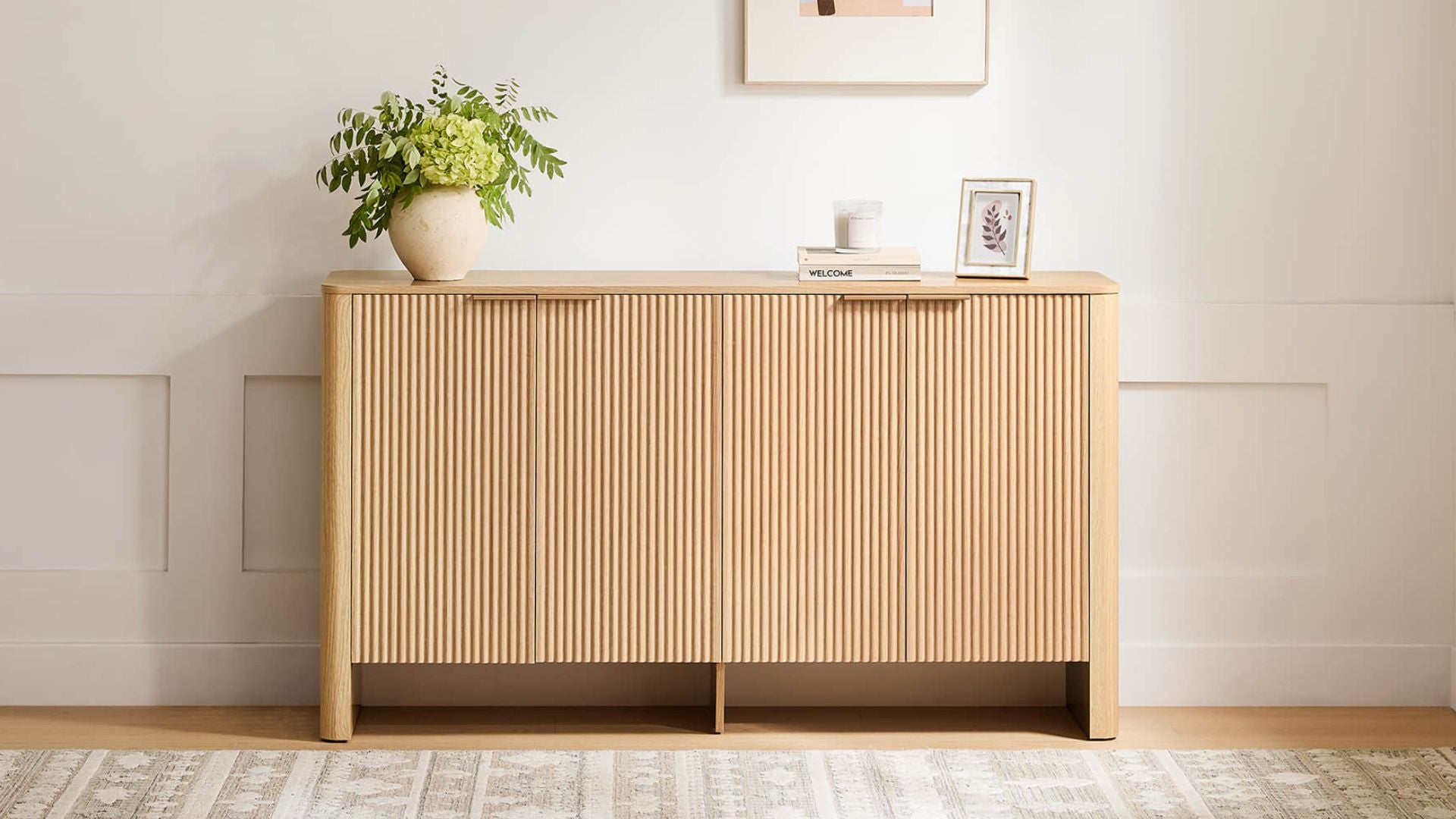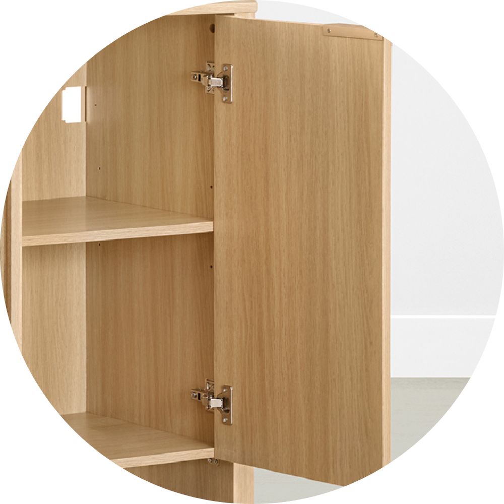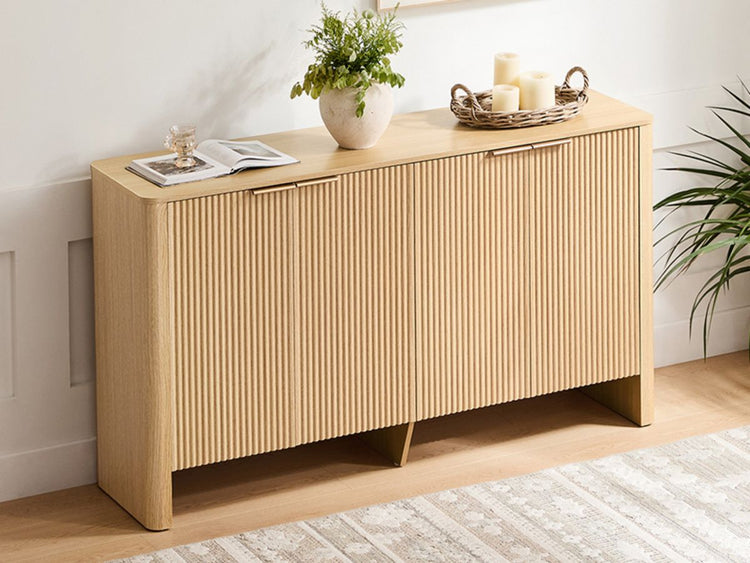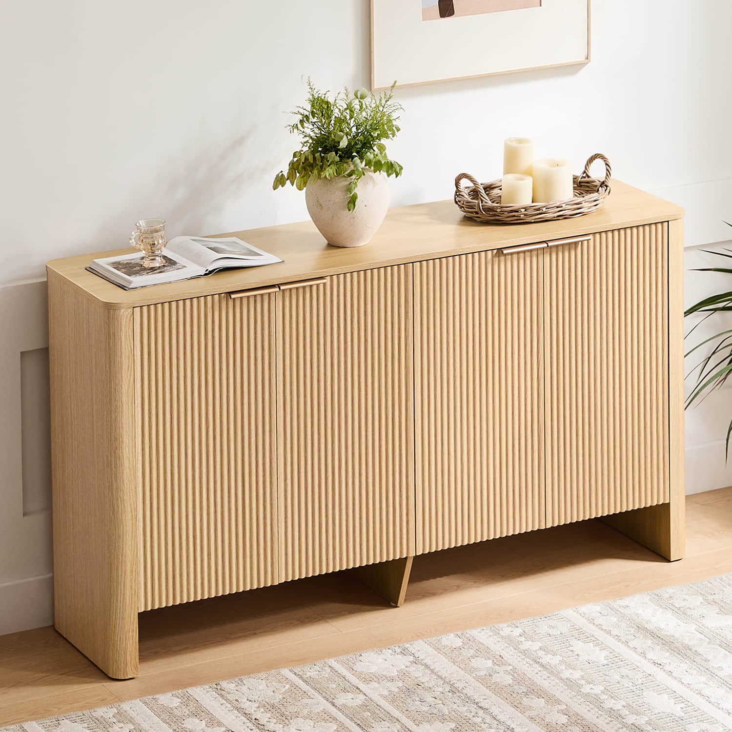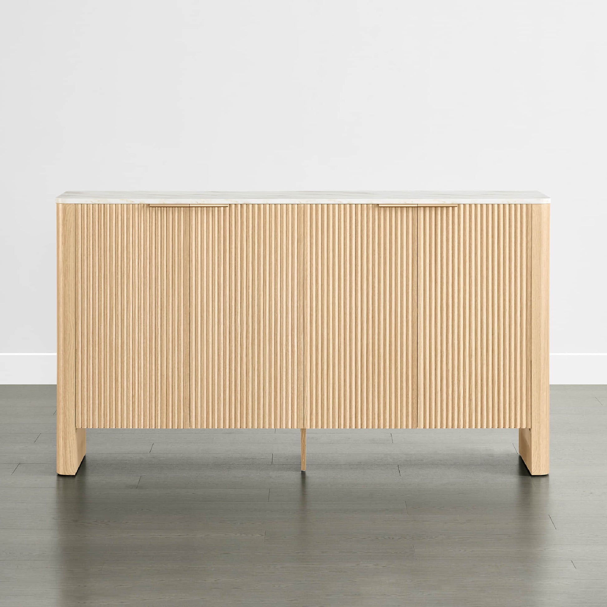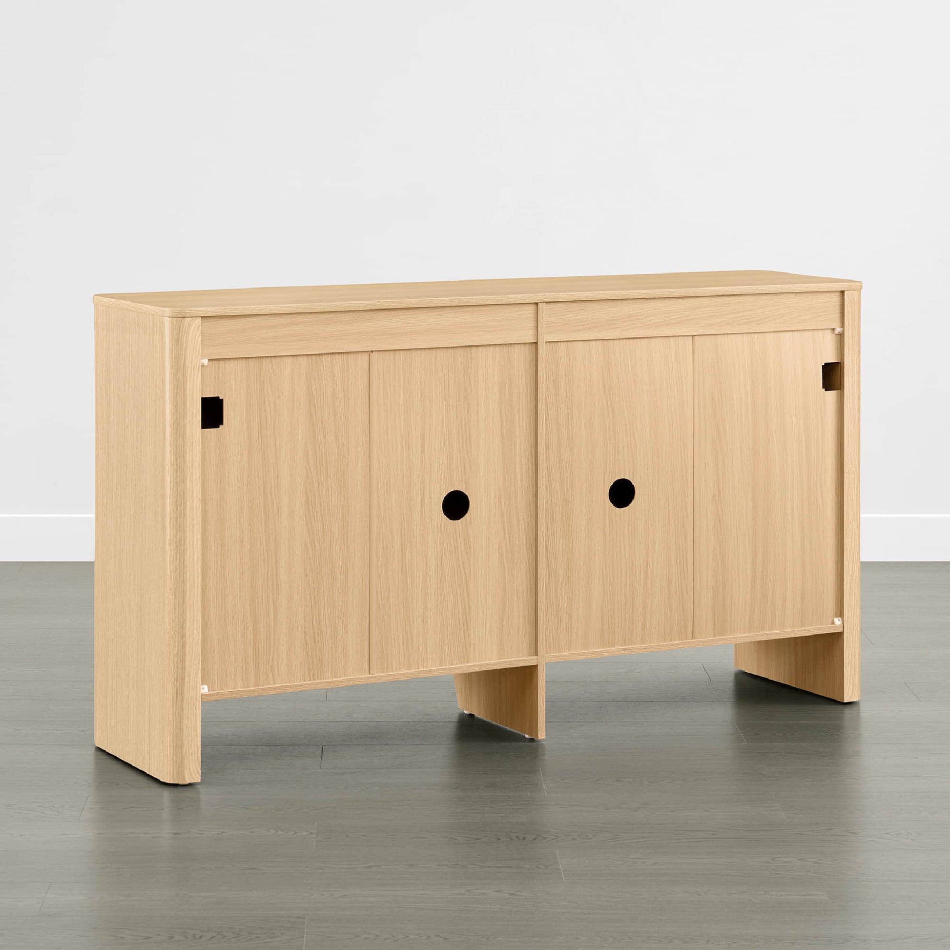 Stylish yet welcoming, Bowen makes practical storage feel like part of your home's story. At 61.4" wide, it anchors dining or living spaces with its clean lines, softened rounded edges, and choice of faux marble or wood grain finishes. Inside, adjustable shelves offer flexible storage for dinnerware, décor, or daily essentials. Crafted from eco-friendly panels with a durable, scratch- and moisture-resistant surface, it combines timeless style with family-friendly durability for a lasting centerpiece you’ll love.