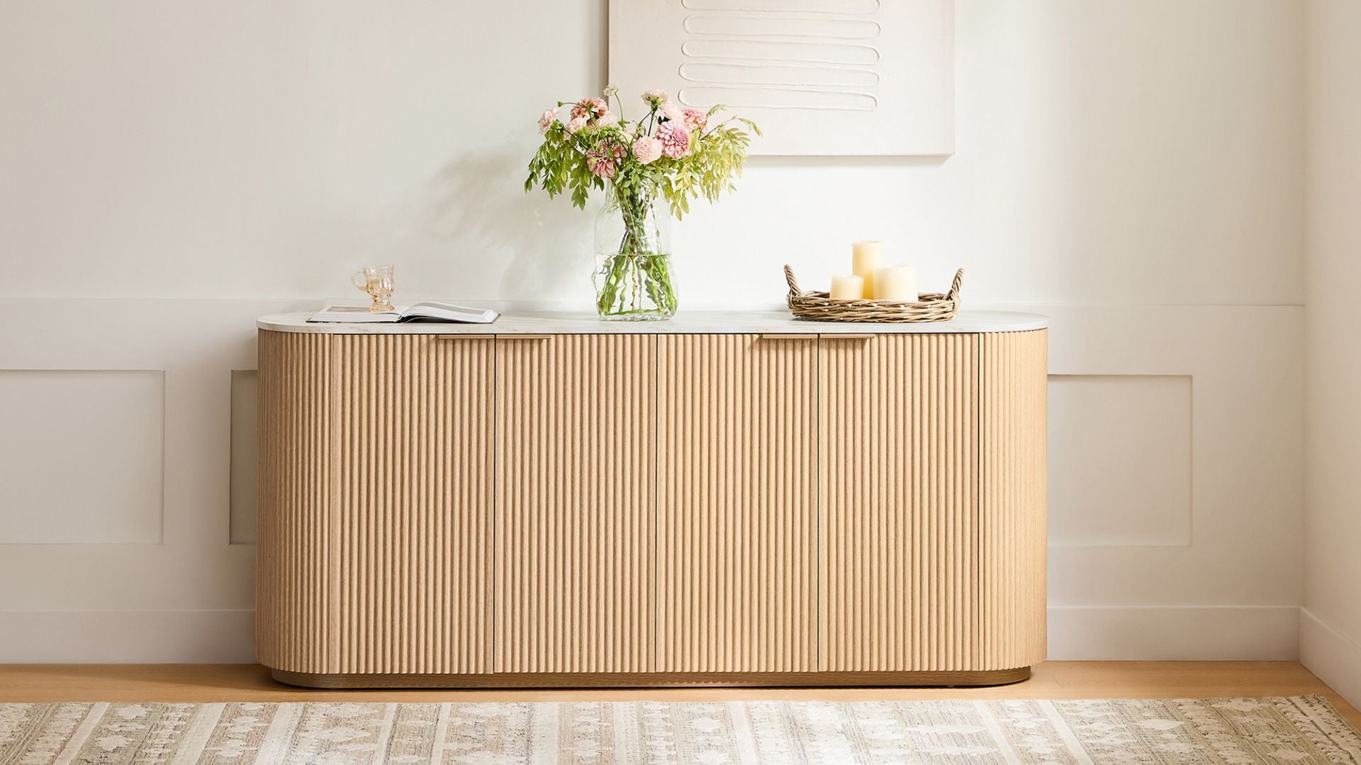 Scratch- and spill-resistant finish keeps the sideboard looking pristine through daily use.