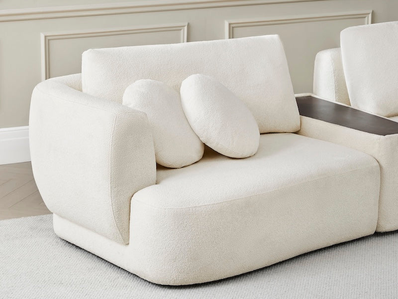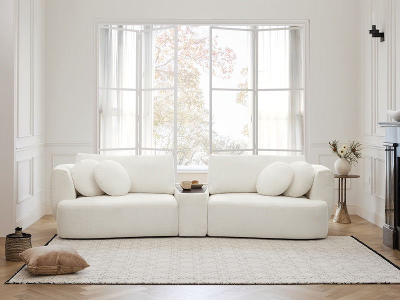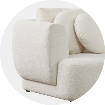 With its sweeping curves and sophisticated boucle fabric, Grace is more than just a sofa — it’s a statement piece. Its contours add a refined beauty to every space, while the textured, looped yarn of the boucle evokes a timeless elegance, inviting you to stay a while and unwind.