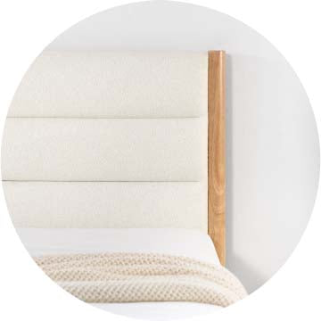 The boucle fabric headboard, with its soft texture and gentle natural tones, combined with a sturdy solid hardwood frame, creates a serene retreat where style and comfort coexist.