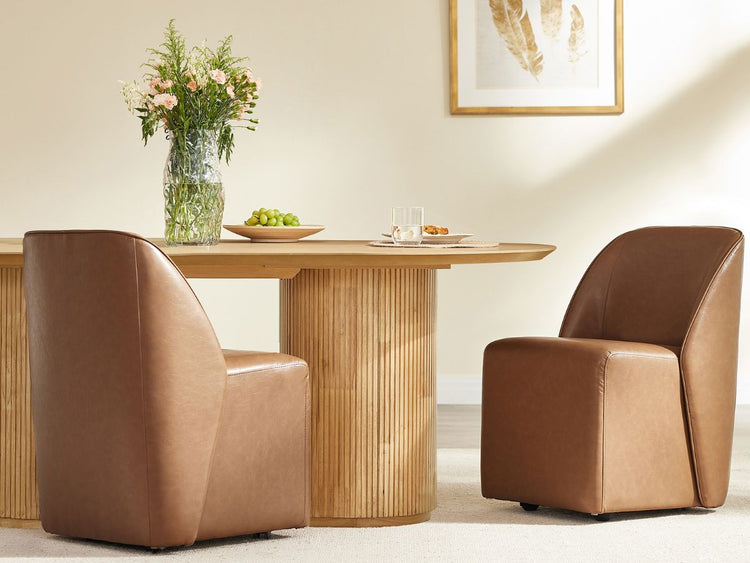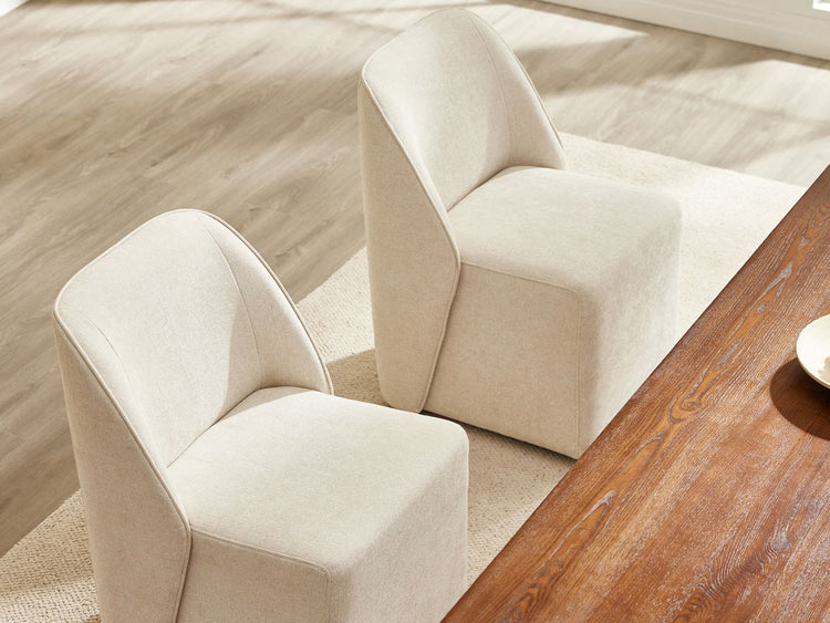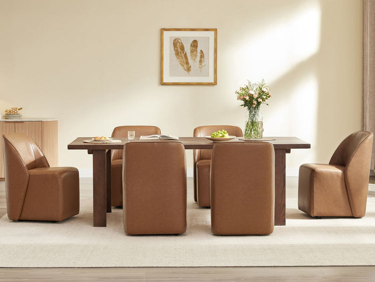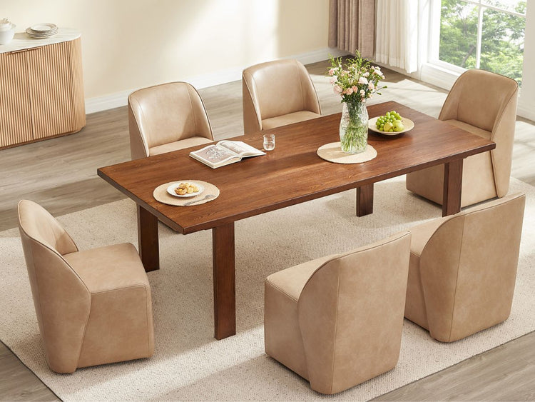 Bring warmth and ease to every occasion with the Soren Dining Chair, designed for comfort and style. Wrapped in soft, durable fabric or faux leather, its gently curved backrest embraces you in comfort from the first sip to the last bite. Removable hidden casters let you roll with ease—no dragging, no noise—while a kiln-dried wood frame delivers lasting strength.Certified CertiPUR-US® foam cushions provide eco-friendly comfort you can trust, and its medium-firm seat feels just right for both lounging and focus.