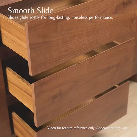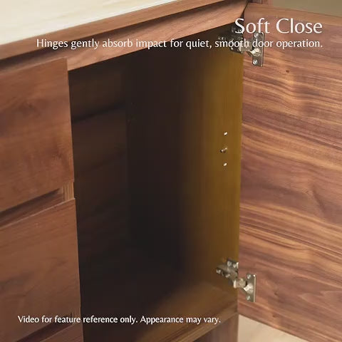Chad Sideboard pairs natural walnut veneer with a smooth 0.2" travertine sintered stone top, creating a timeless balance of warmth and refinement. Its curved corners and concealed handles lend a clean, modern silhouette, while three drawers and two side cabinets offer generous storage for dining or living essentials. Thoughtfully crafted to last, with simple assembly—just attach the legs.
