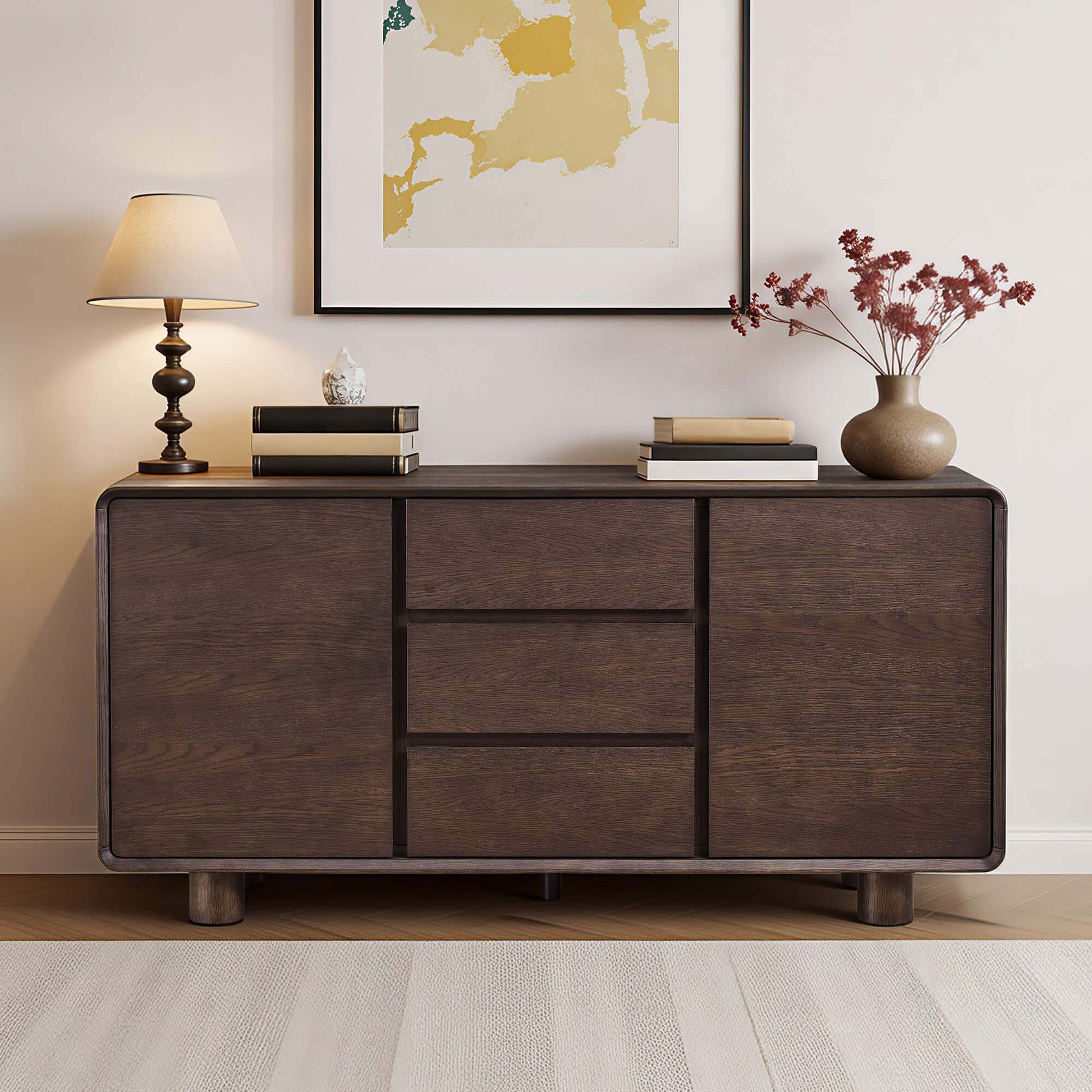 Inspired by vintage modern design, Eason Vintage Oak Coffee Sideboard Buffet is crafted for long-term living. Oak tones, solid construction, and balanced proportions create a piece that ages gracefully—growing more character with every year of use.