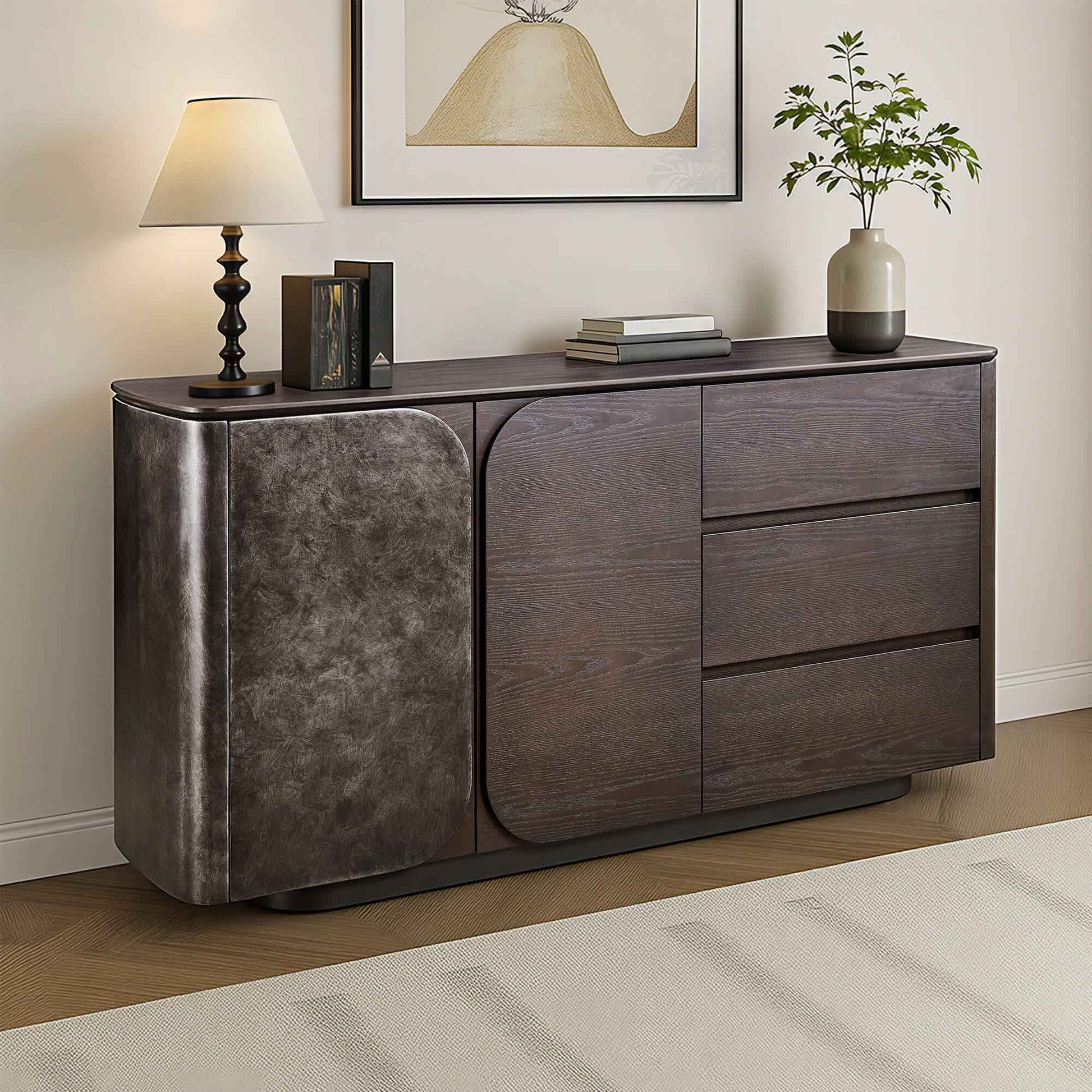Samuel is a modern Scandinavian sideboard and a true master of versatility—bringing together architectural elegance and adaptability to meet the demands of refined interior spaces. Shown here in Ash wood with an elegant metallic lacquer accent, Samuel balances clean lines with warm materials and thoughtful detailing.