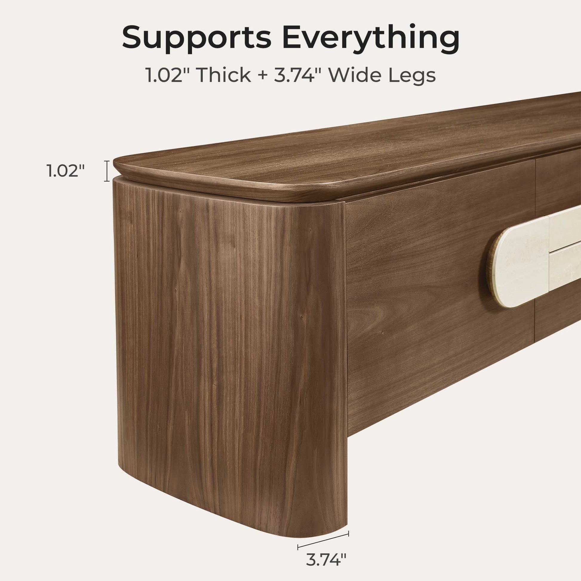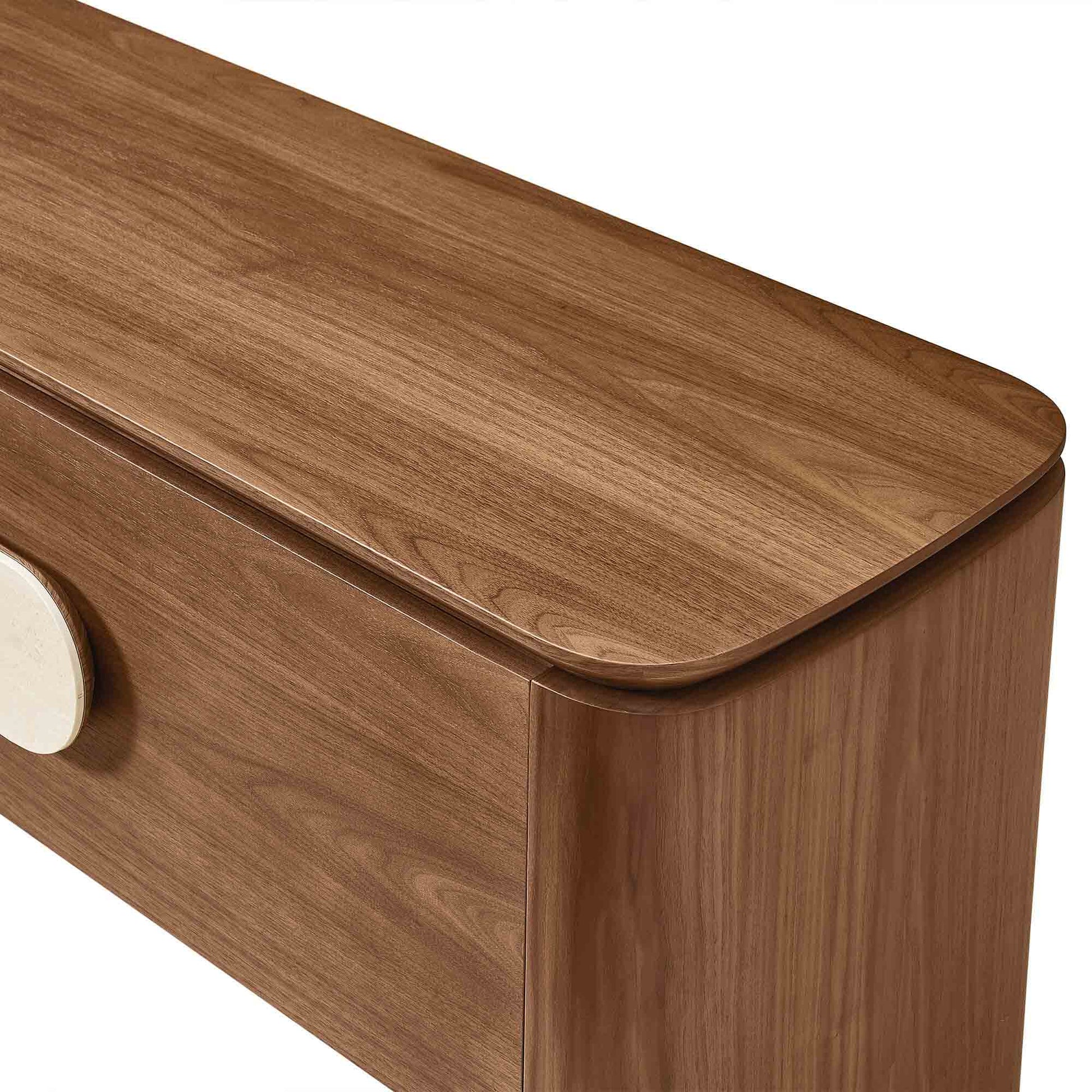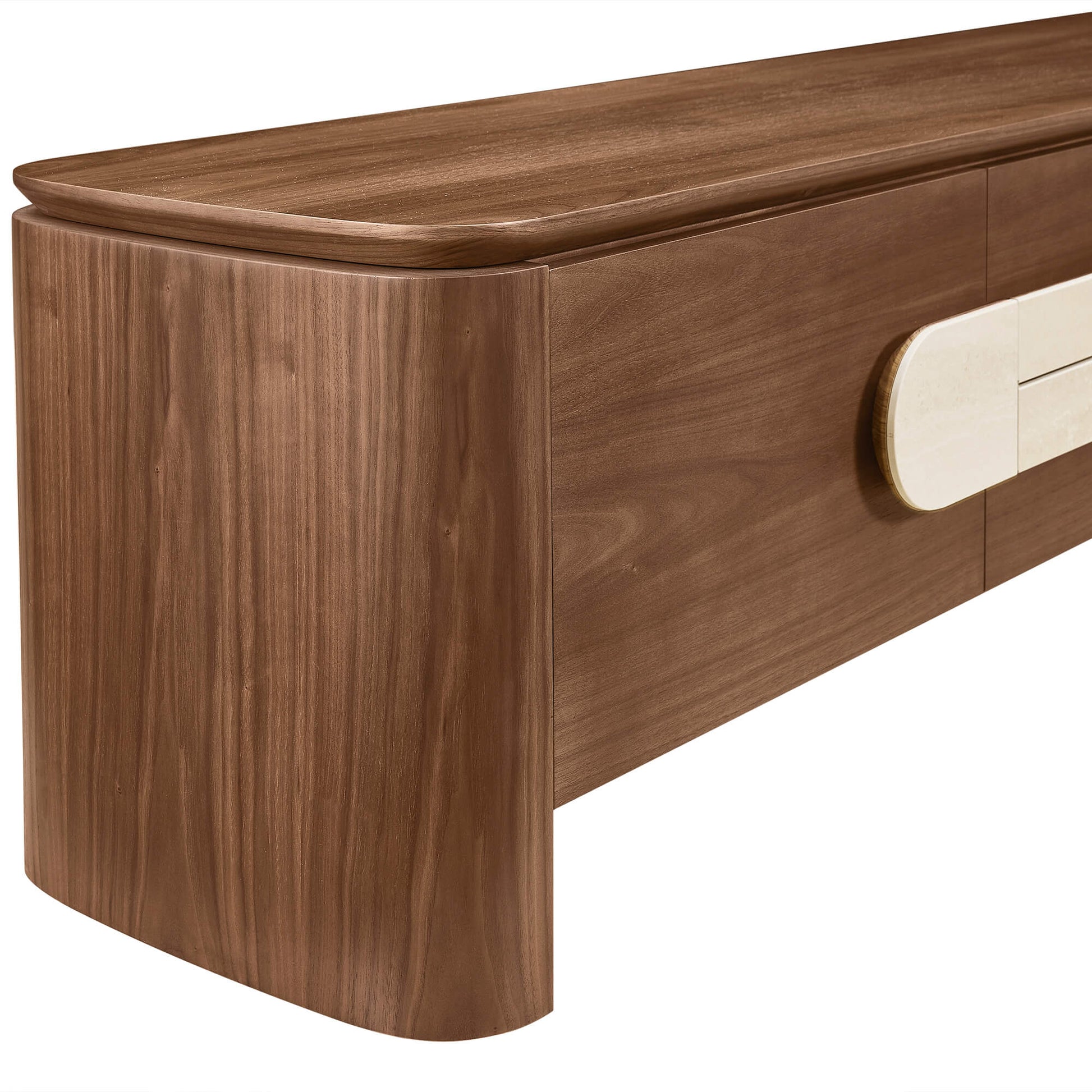 Blending modern minimalism with functional elegance, the Otis TV Stand anchors your media space with deep walnut warmth and subtle travertine accents. Rounded edges and a sculpted silhouette create a refined and tactile presence. Fully assembled and thoughtfully detailed, it’s a statement of craftsmanship that organizes, elevates, and endures.
