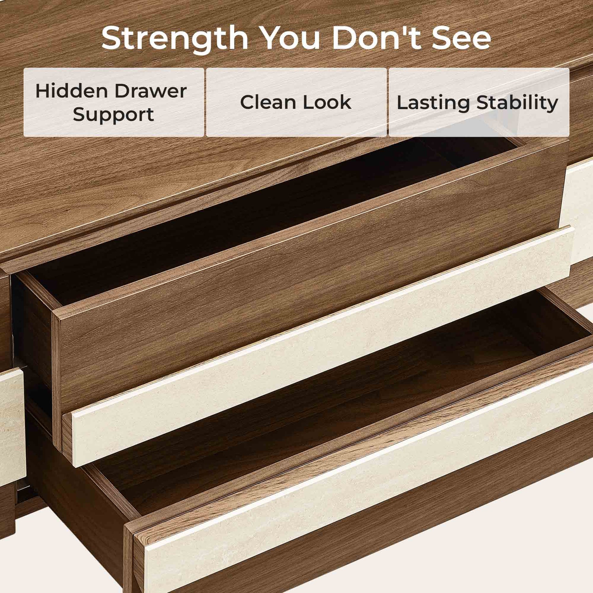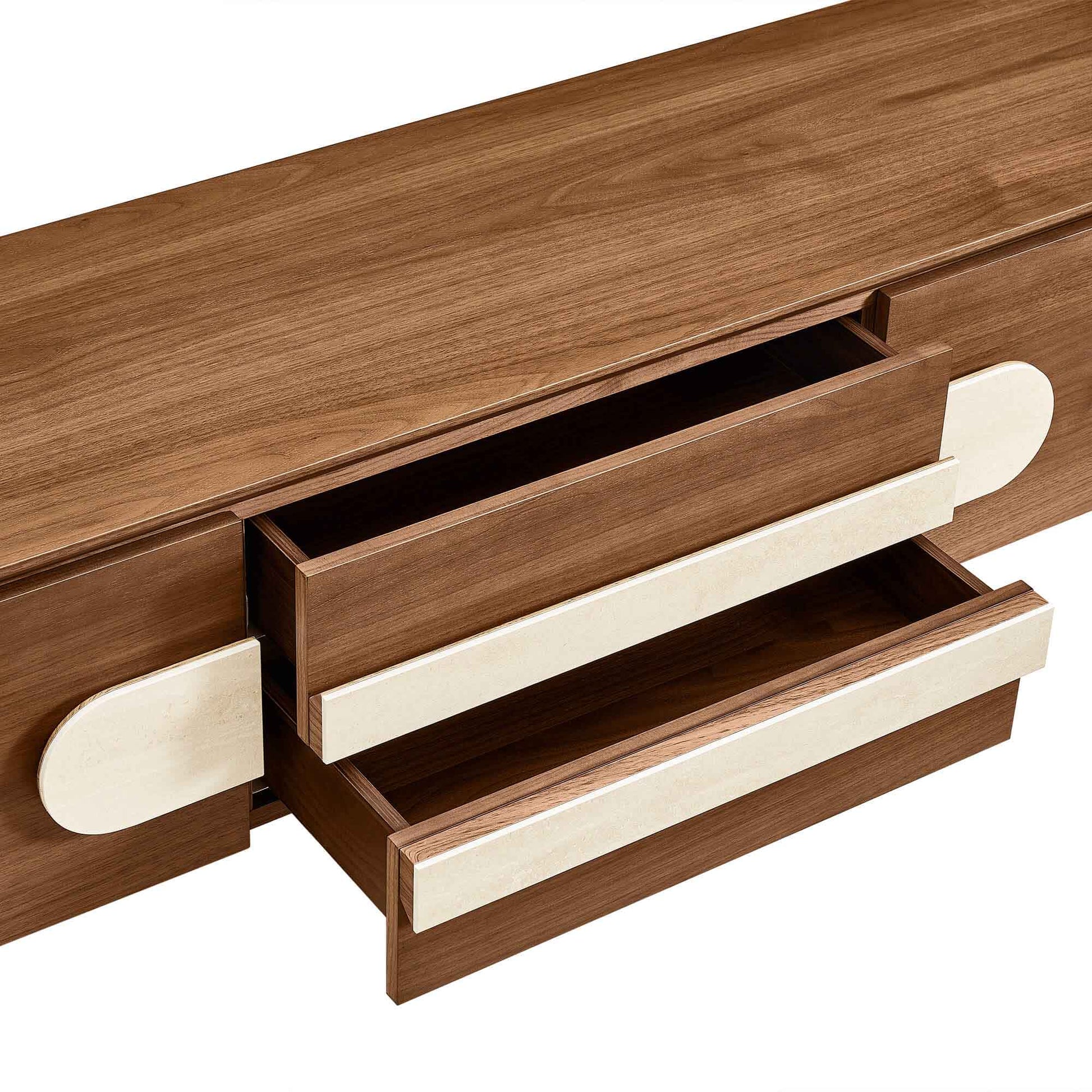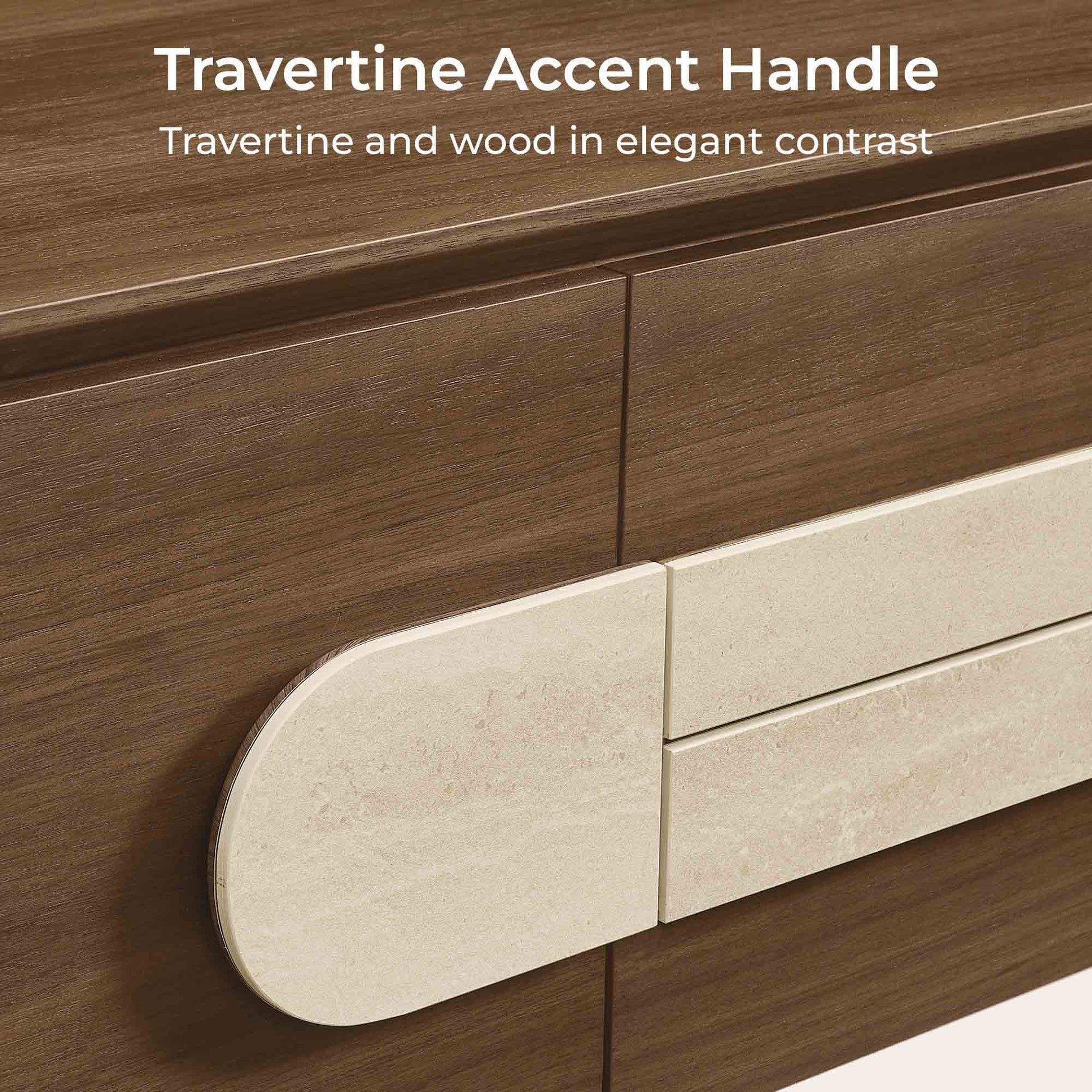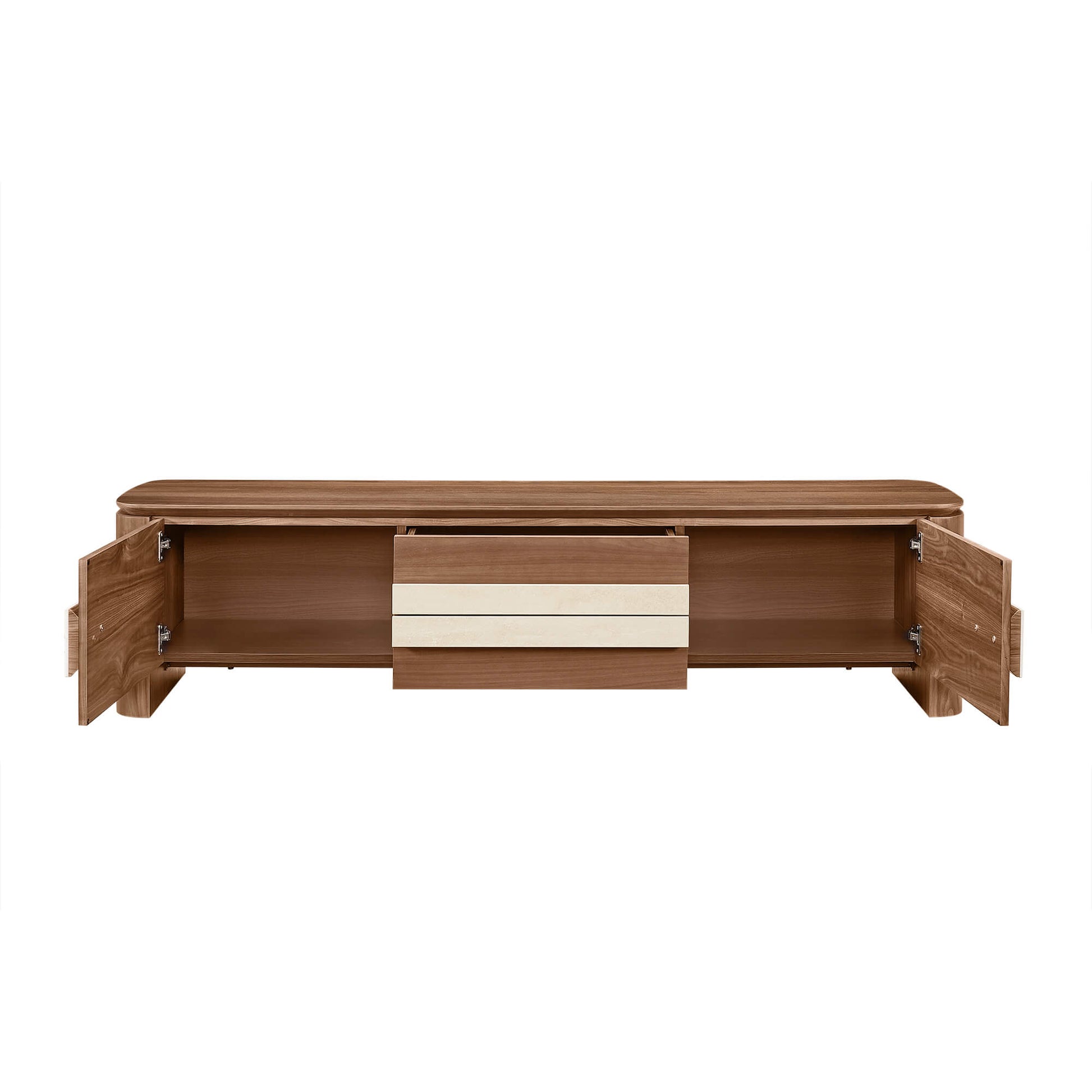 Blending modern minimalism with functional elegance, the Otis TV Stand anchors your media space with deep walnut warmth and subtle travertine accents. Rounded edges and a sculpted silhouette create a refined and tactile presence. Fully assembled and thoughtfully detailed, it’s a statement of craftsmanship that organizes, elevates, and endures.