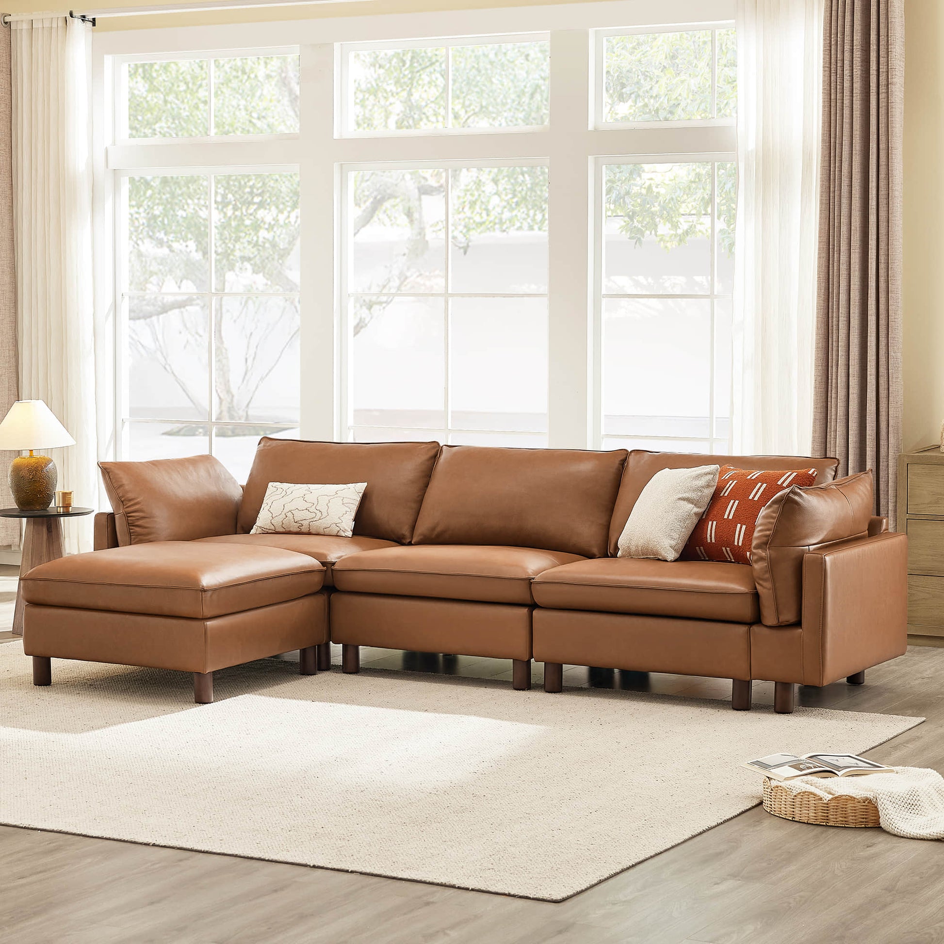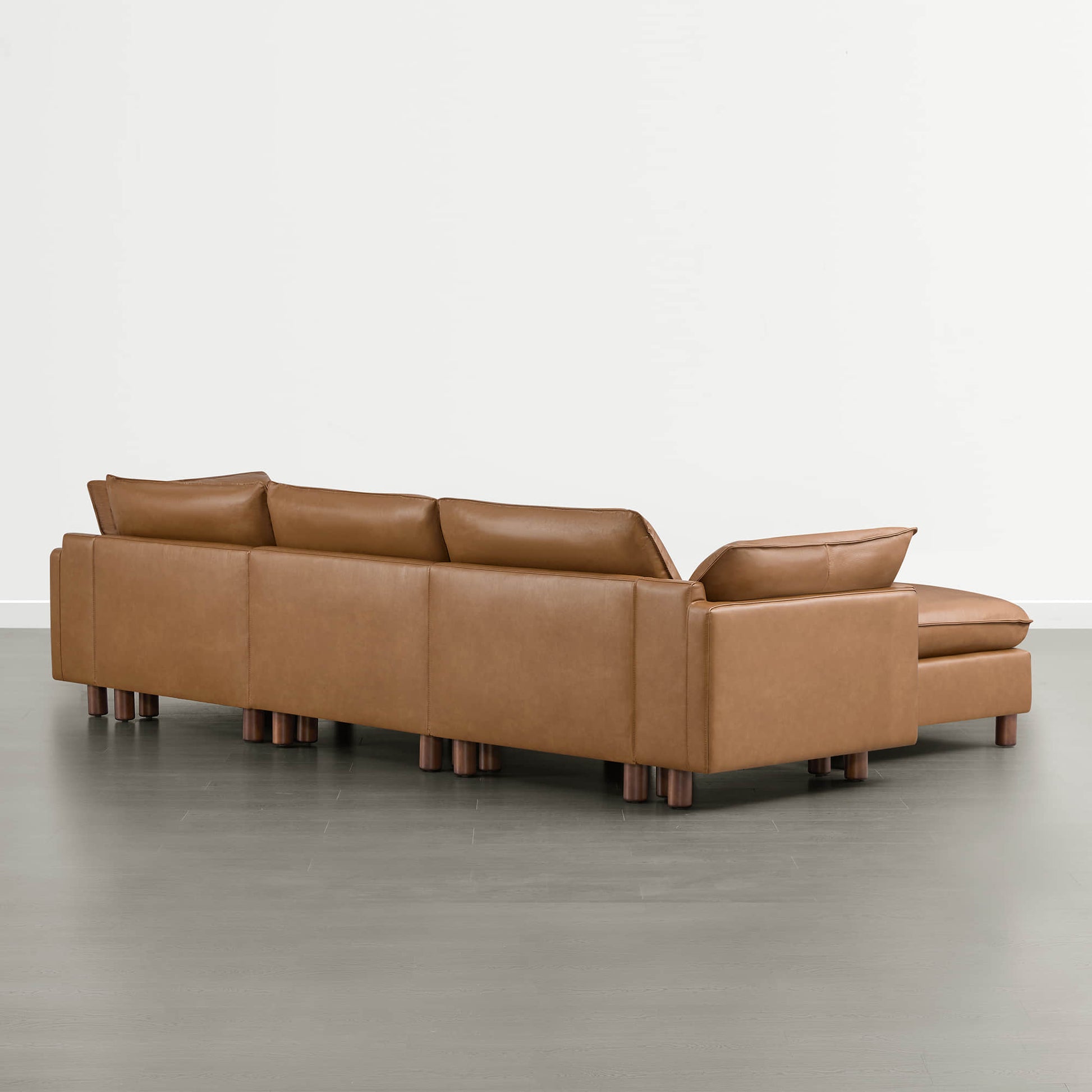 The Brendon Modular Sofa blends modern design with lasting comfort, available in buttery top-grain leather or soft, textured fabric. Its raised high-leg design adds airy elegance and easy cleaning, while oversized armrests and adjustable cushions offer personalized support. Plump cushions with zip-off covers make upkeep effortless, keeping every pillow fresh and inviting through daily lounging. Built from FSC® Certified, kiln-dried wood with a no-sag spring system, Brendon delivers timeless style and everyday ease.