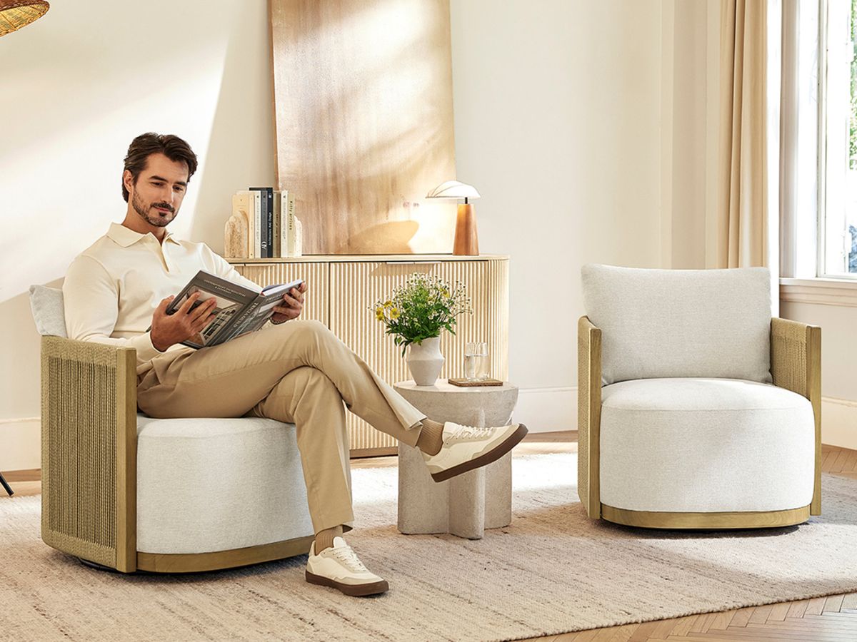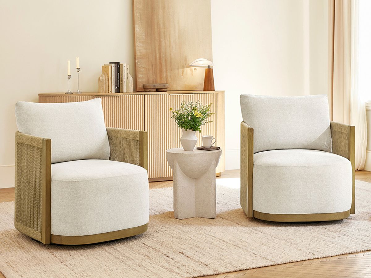 Blending natural artistry with effortless, everyday comfort. The Carl Chair pairs a hand-woven paper cord seat with a softly curved wooden frame, radiating an easy boho charm. Its hidden 360° swivel base keeps movement smooth and graceful, while the dual-support suspension and plush chenille cushion invite you to linger a little longer. Made with kiln-dried hardwood and OEKO-TEX® certified fabric, it’s an airy yet durable accent that complements any cozy corner or sunlit nook.