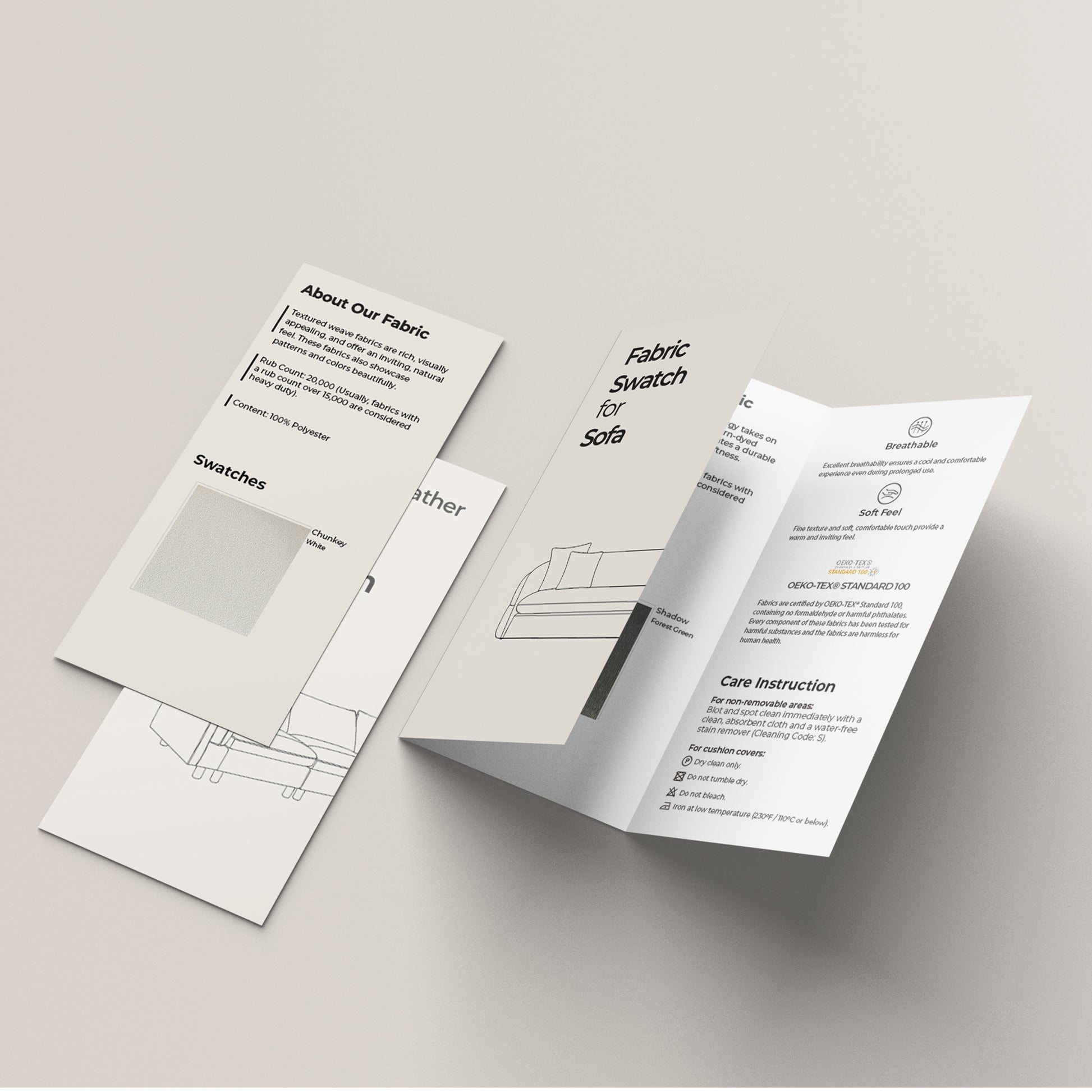 • Swatch samples are designed to give an indication of how the shade and fabric will look in your home, but please note that there may be color variations between your swatch & sofa.