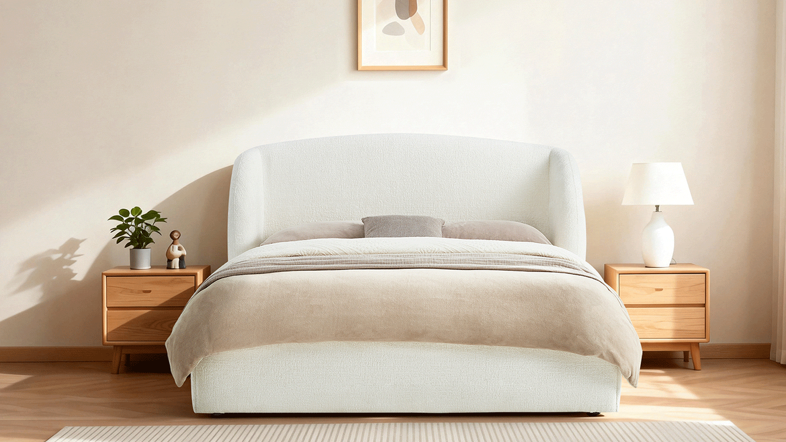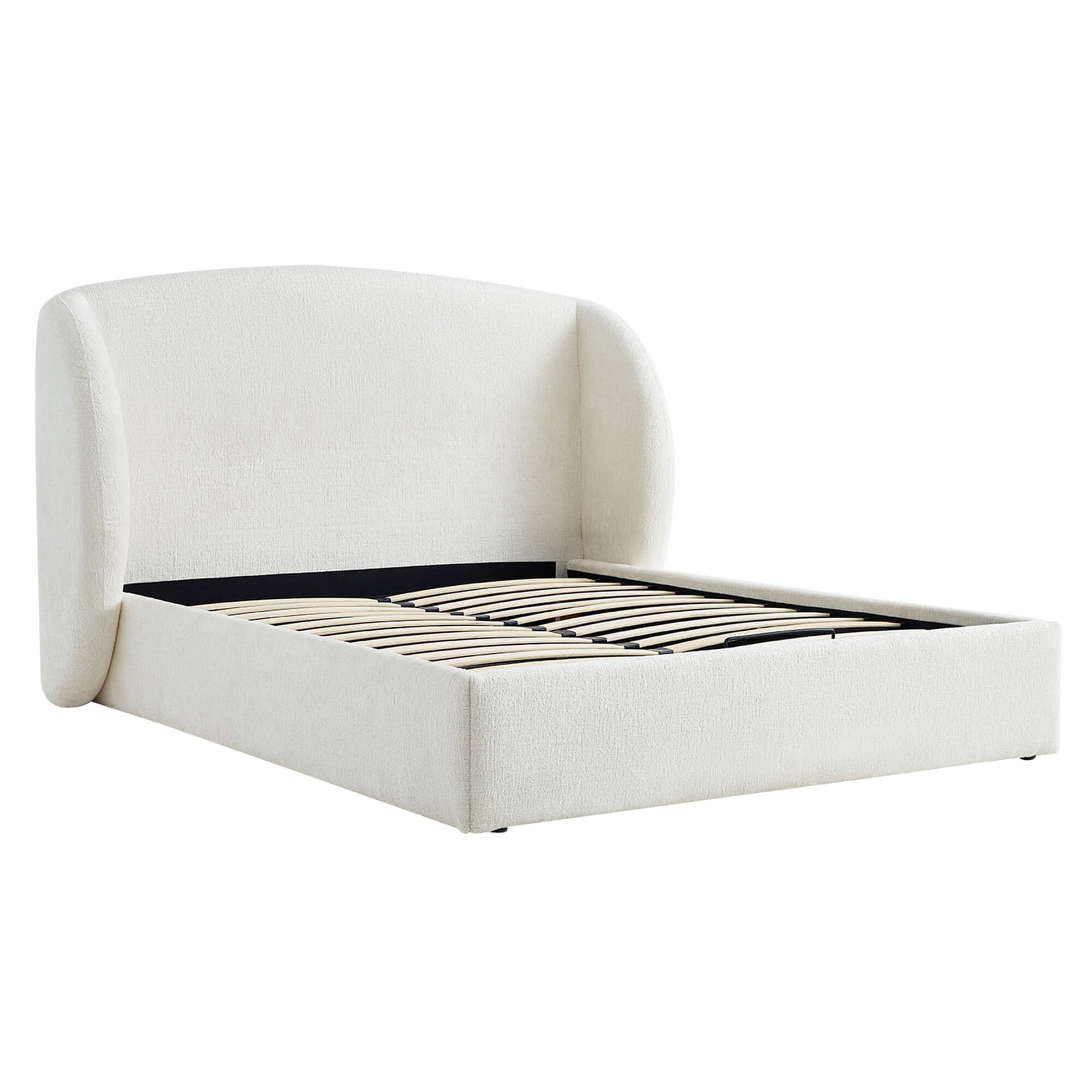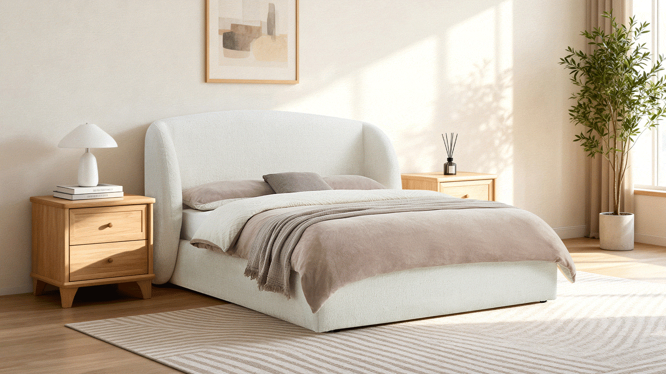 With clean lines and soft, inviting textures, Evie creates a sense of modern ease in your bedroom. The bold wingback headboard creates a grounded, architectural presence, upholstered in safe, water-resistant performance chenille. Beneath the mattress, a smooth gas-lift system reveals generous storage for spare pillows and extra layers. Reinforced with supportive slats and noise-reducing foam, Evie offers lasting stability and quietly restful nights for years ahead.