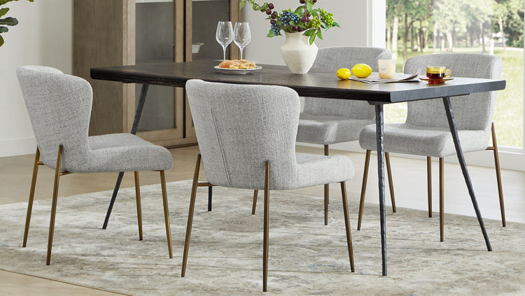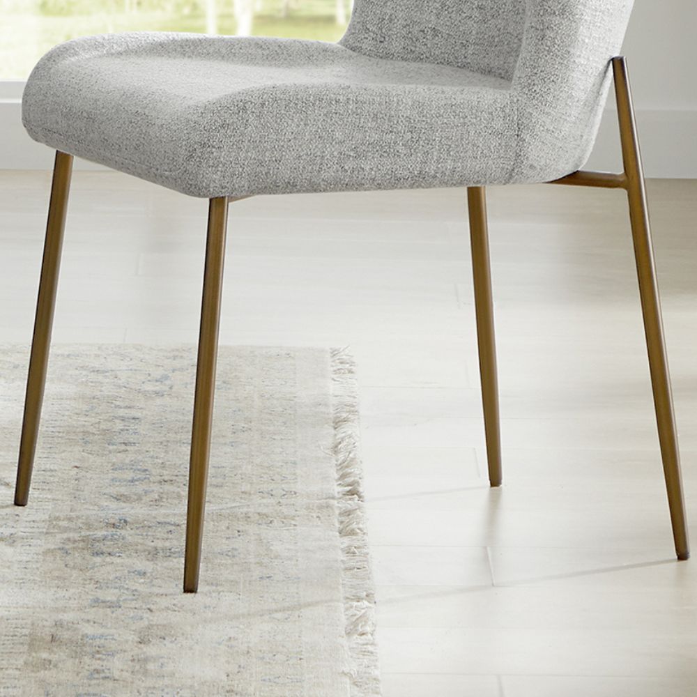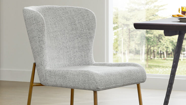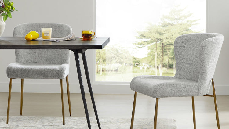 The Nova Dining Chair combines sculpted modern design with inviting comfort. Its gracefully curved backrest and cozy scoop seat hug your body, making long meals feel effortless. A sleek iron frame in brushed antique brass adds warmth and sophistication, complementing both modern and transitional spaces. Offered in two easy-care options—butter-soft faux leather or OEKO-TEX®-certified textured fabric—Nova delivers a timeless look that’s as practical as it is elegant, ensuring beauty and comfort for years.