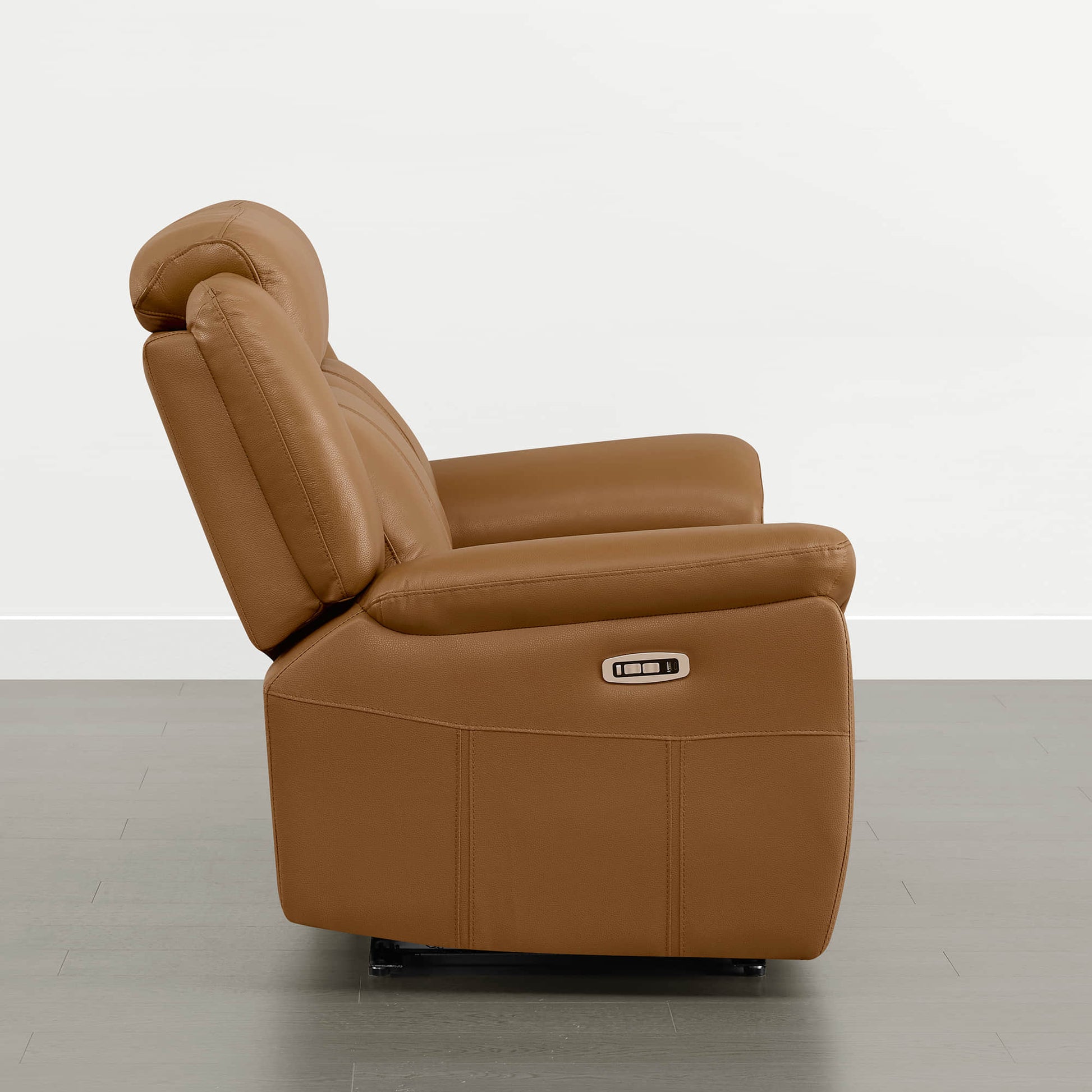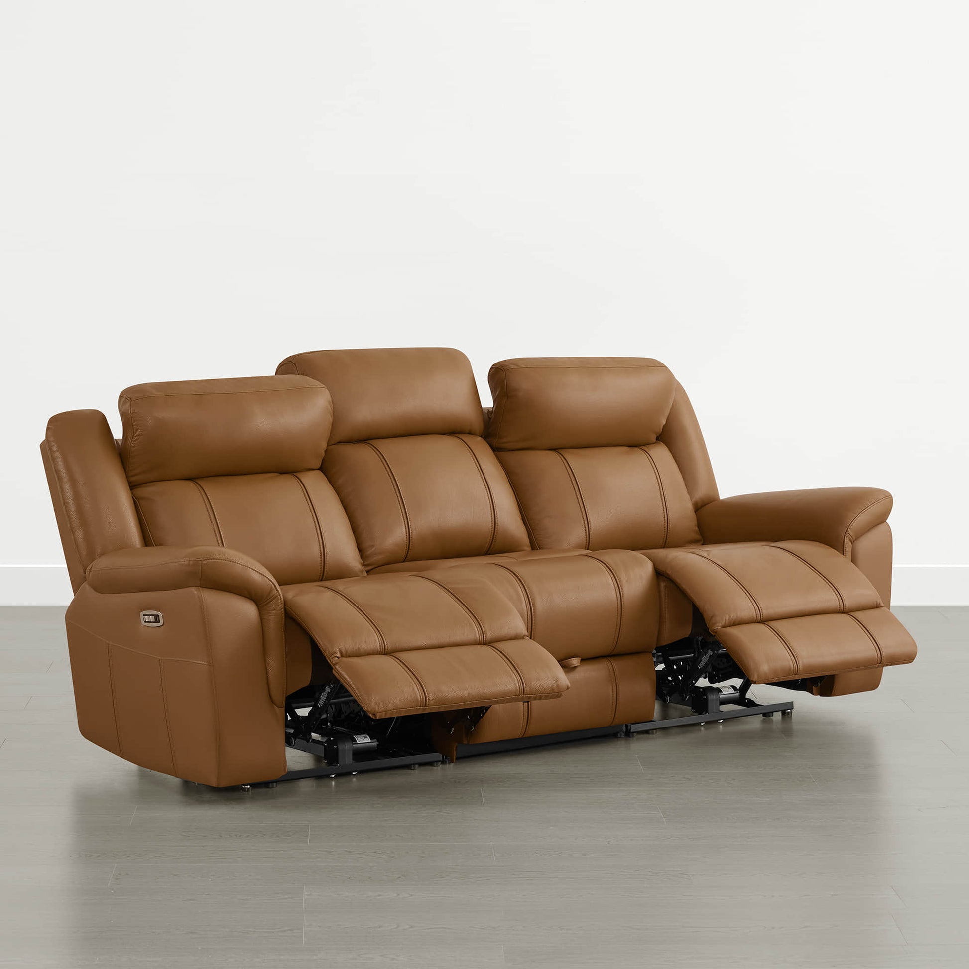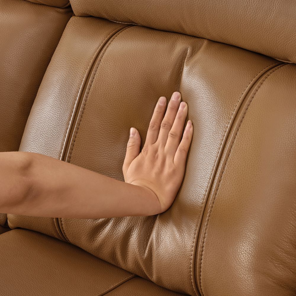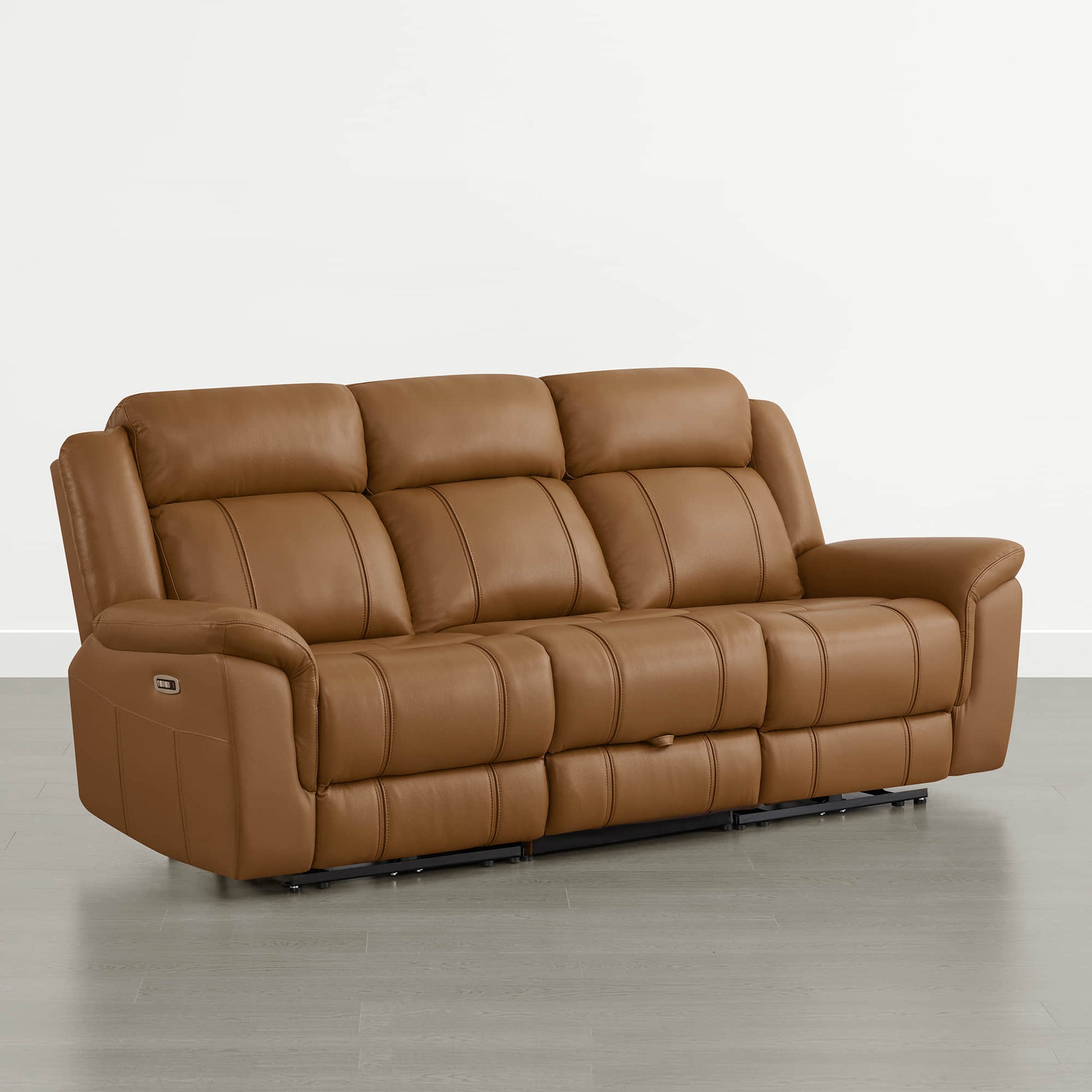 Meet Grady, a reclining sofa designed to bring a sense of ease into your everyday moments. Its plush, cloud-like padding invites you to unwind the moment you sit down, while dual motors gently adjust the backrest, footrest, and headrest to the position that feels just right. Soft top-grain leather adds a warm, tactile touch to your home, and the wall-hugger design makes Grady feel at home even in smaller spaces. Thoughtfully crafted and quietly supportive, it’s comfort you’ll look forward to sinking into.
