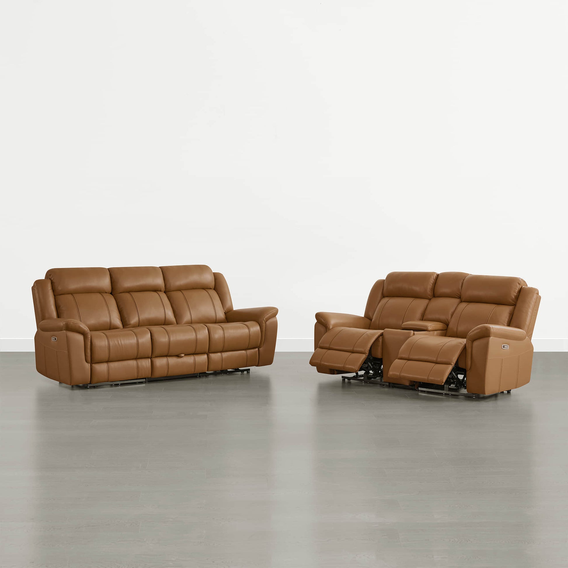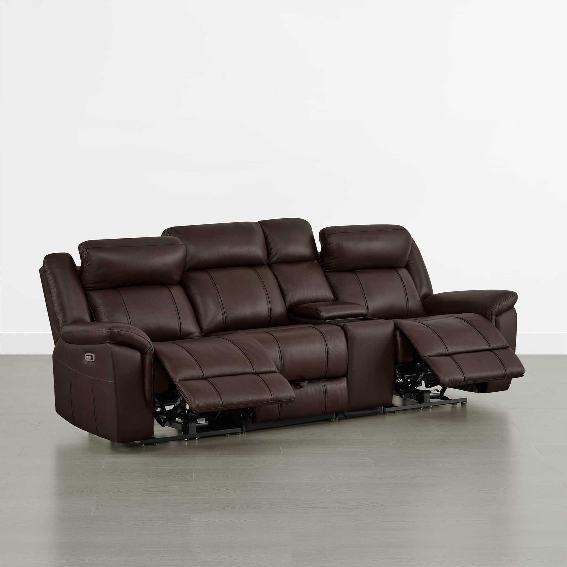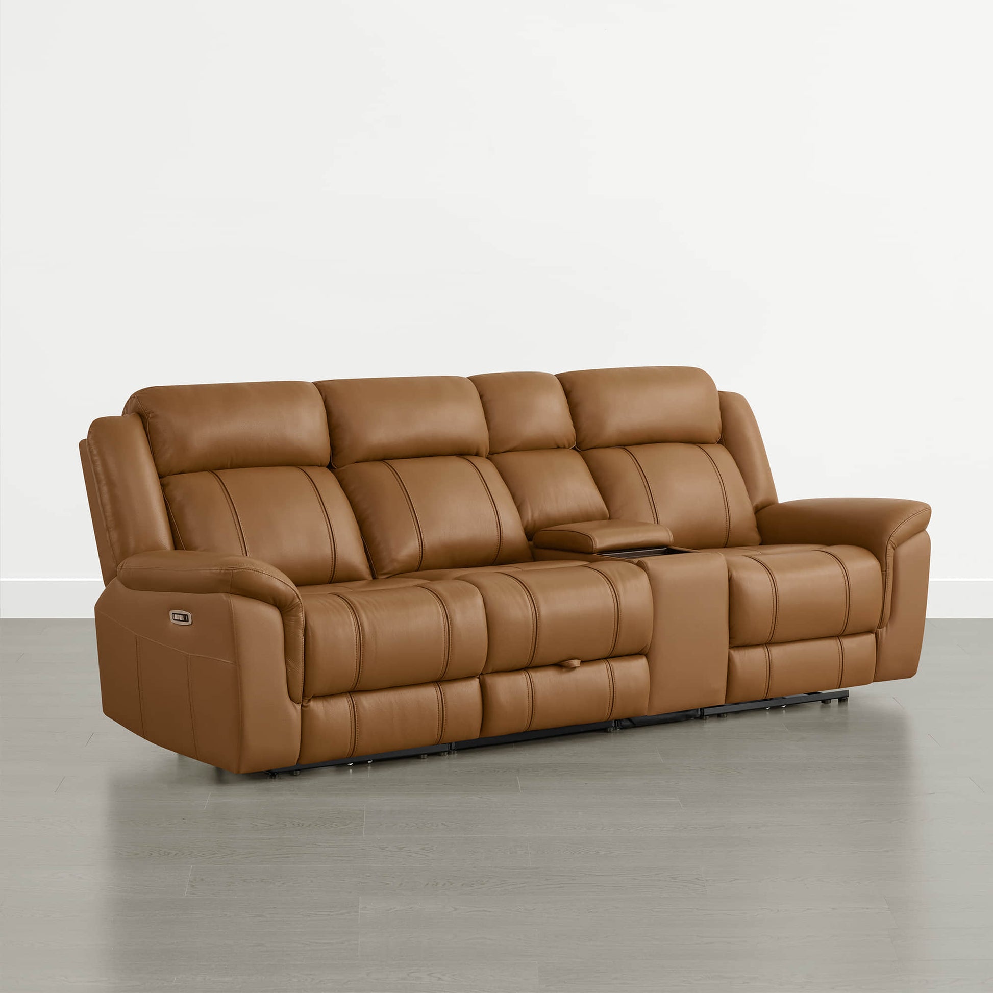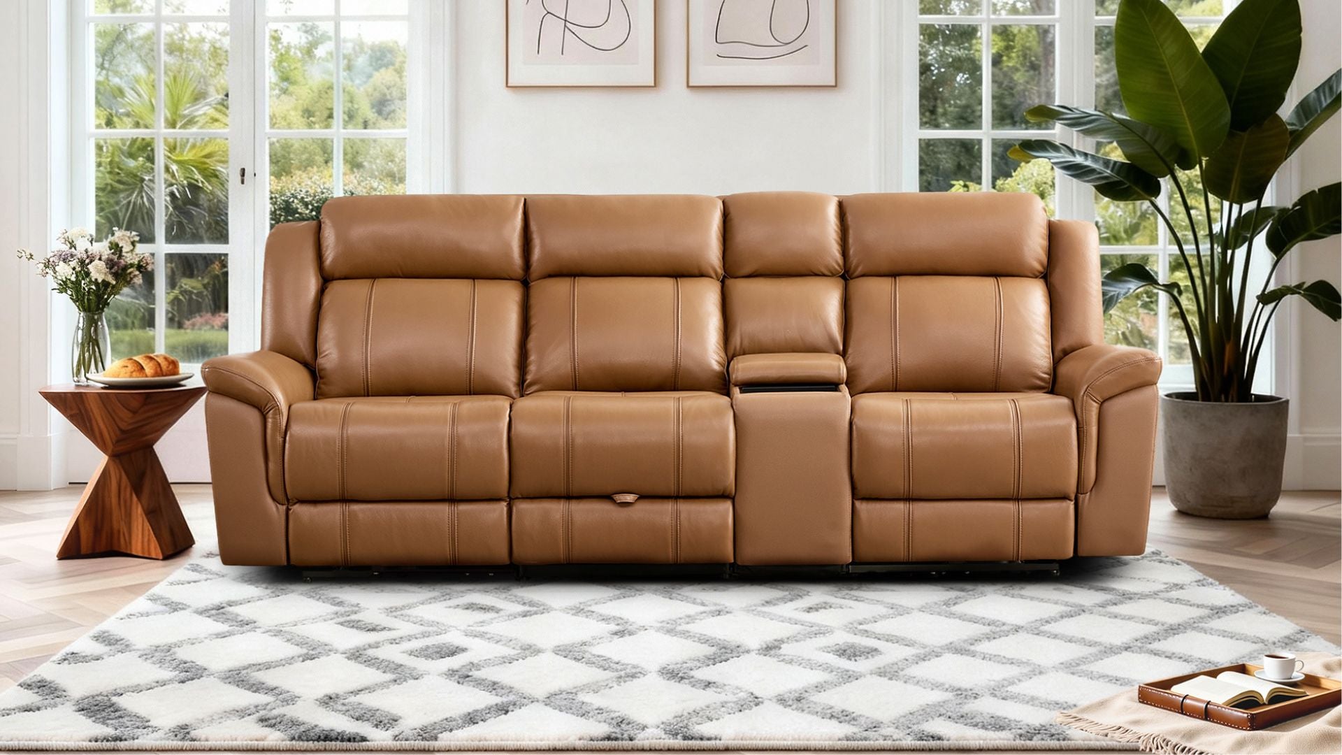 Meet Grady, a reclining sofa designed to bring a sense of ease into your everyday moments. Its plush, cloud-like padding invites you to unwind the moment you sit down, while dual motors gently adjust the backrest, footrest, and headrest to the position that feels just right. Soft top-grain leather adds a warm, tactile touch to your home, and the wall-hugger design makes Grady feel at home even in smaller spaces. Thoughtfully crafted and quietly supportive, it’s comfort you’ll look forward to sinking into.