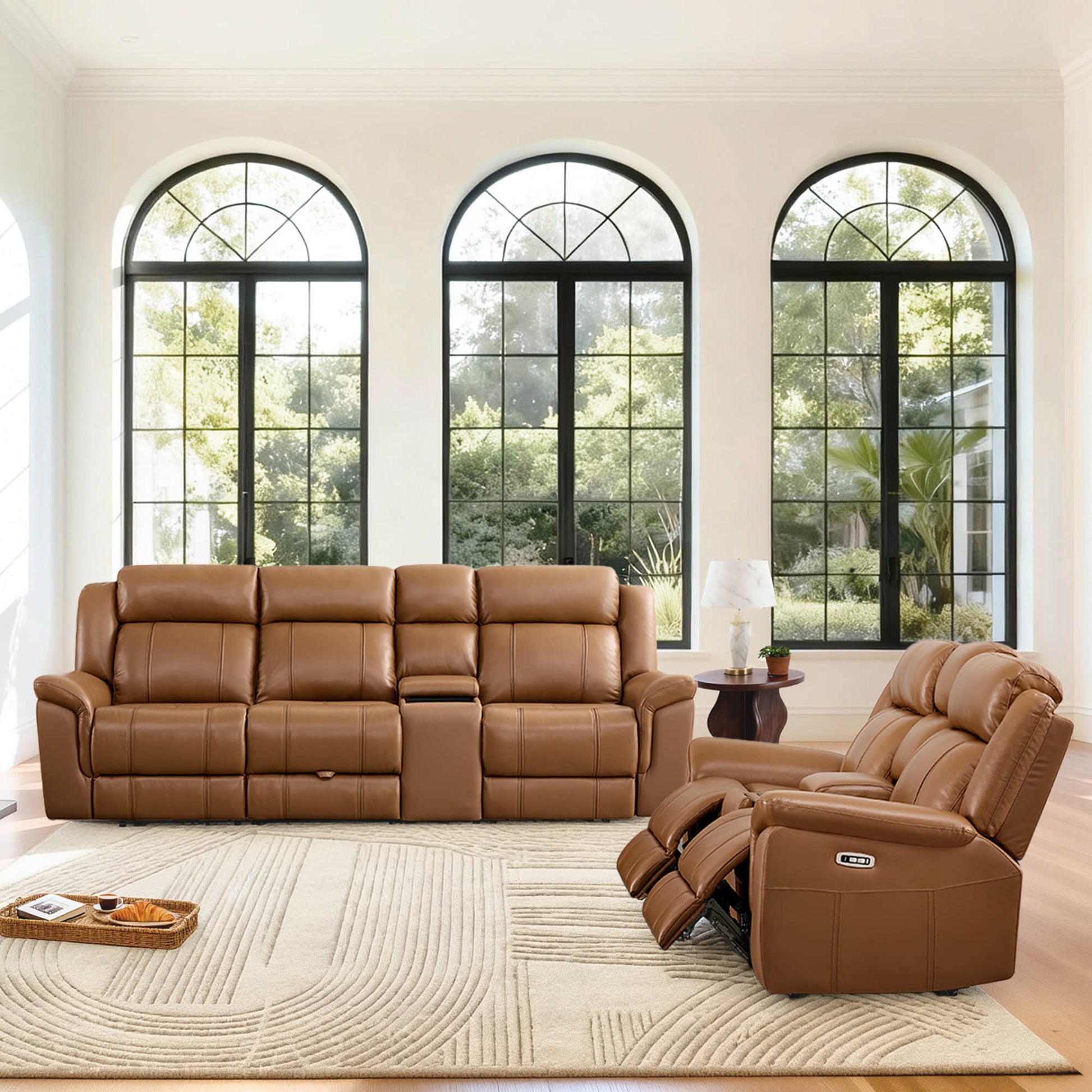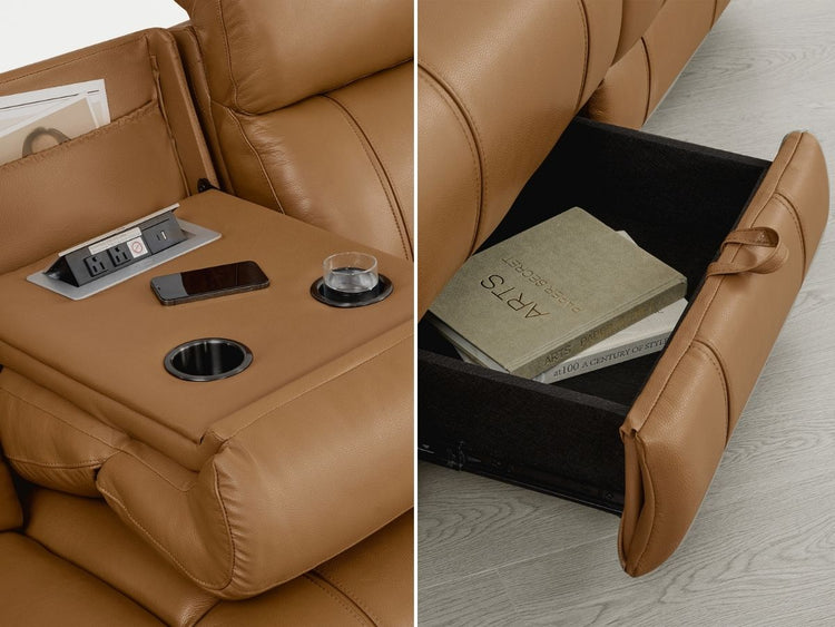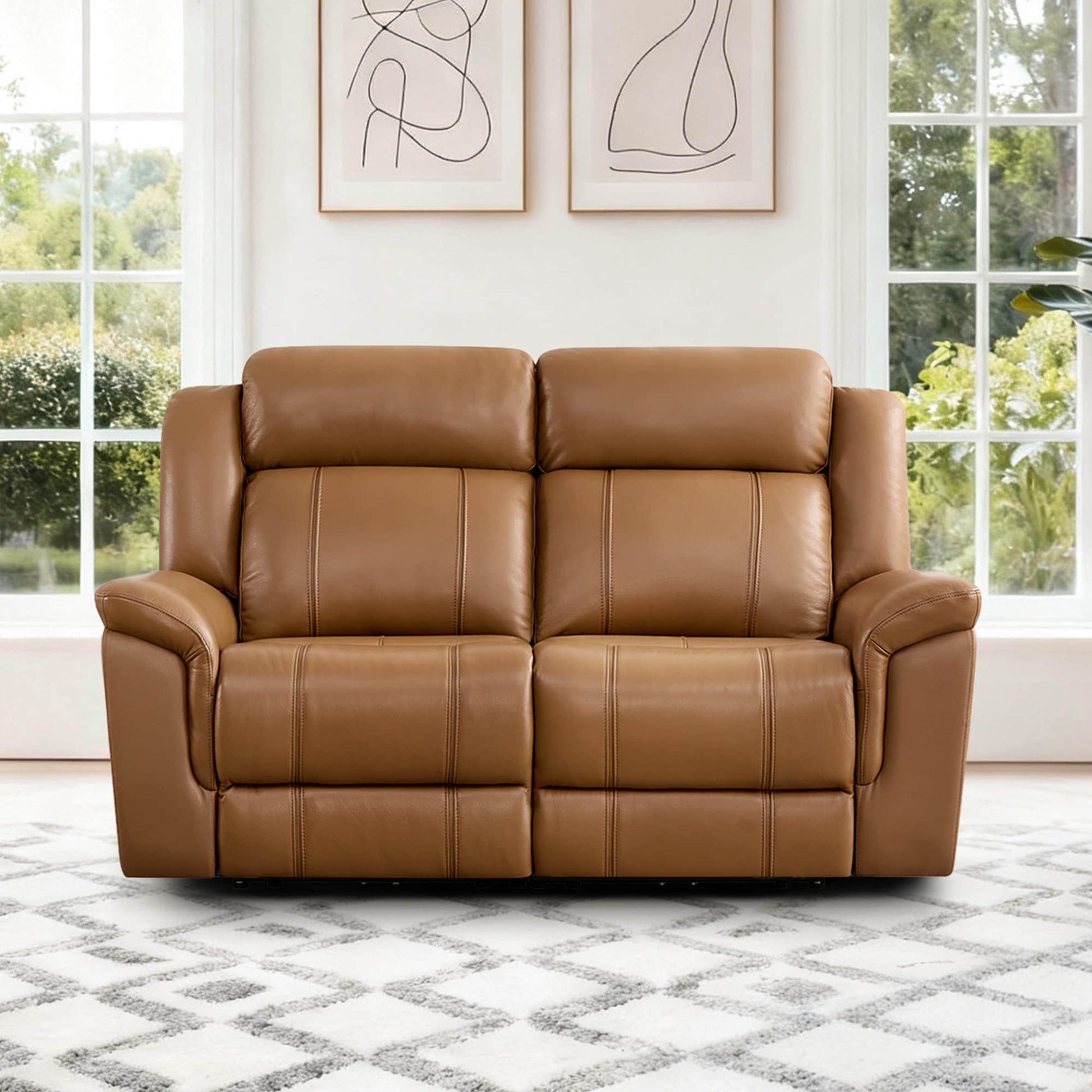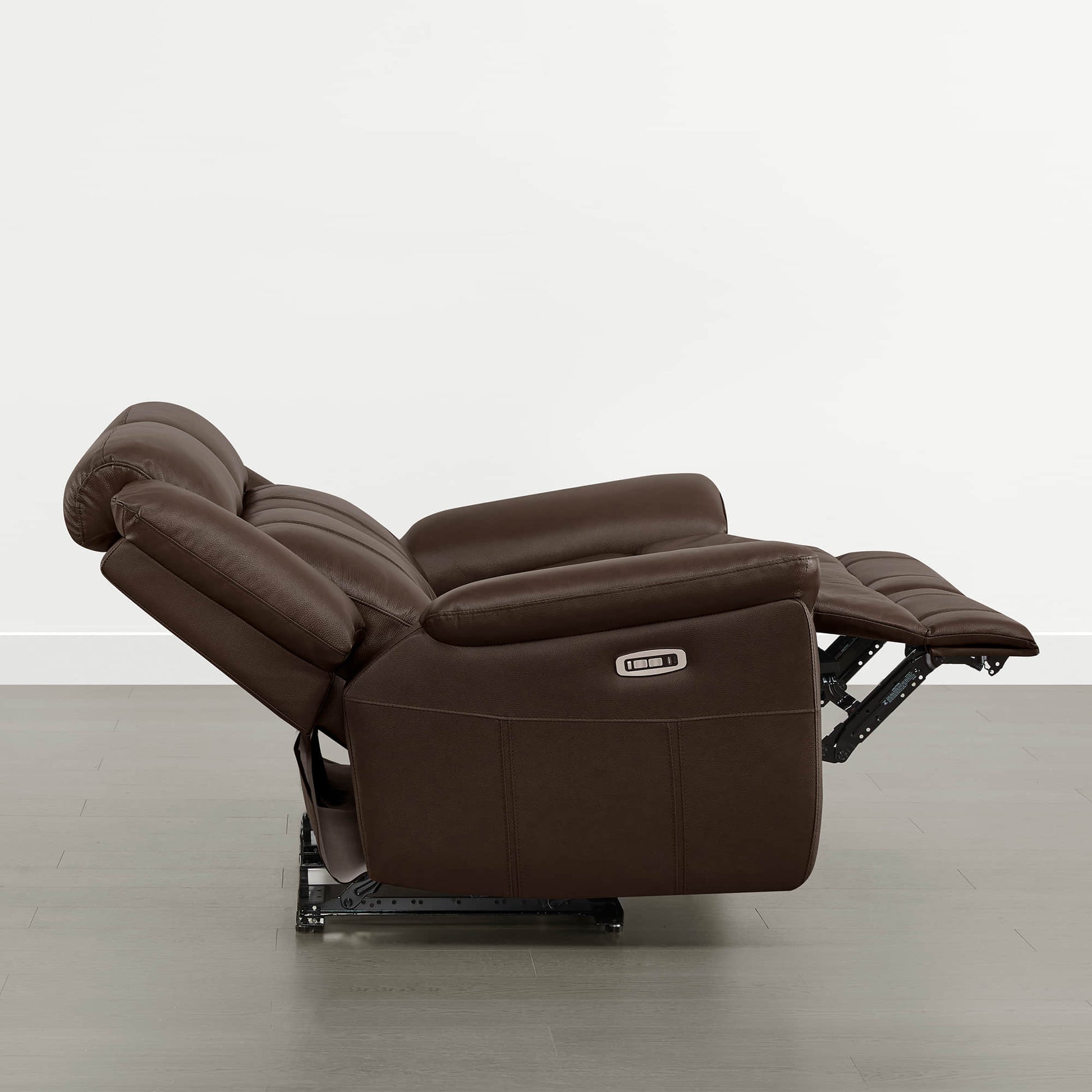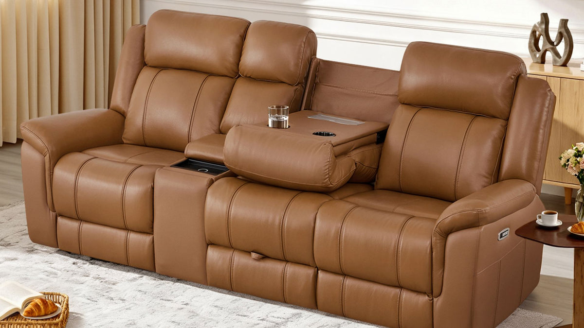 Meet Grady, a reclining sofa designed to bring a sense of ease into your everyday moments. Its plush, cloud-like padding invites you to unwind the moment you sit down, while dual motors gently adjust the backrest, footrest, and headrest to the position that feels just right. Soft top-grain leather adds a warm, tactile touch to your home, and the wall-hugger design makes Grady feel at home even in smaller spaces. Thoughtfully crafted and quietly supportive, it’s comfort you’ll look forward to sinking into.