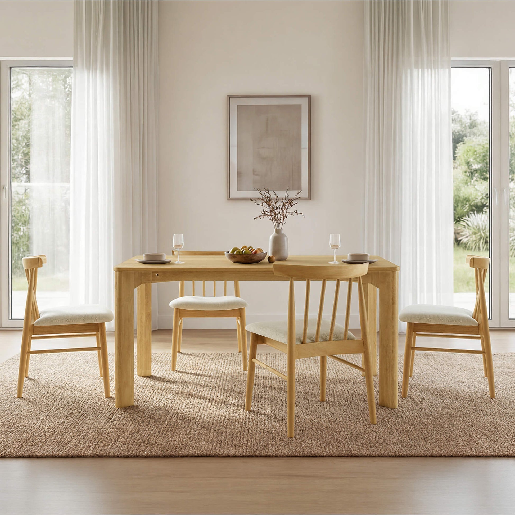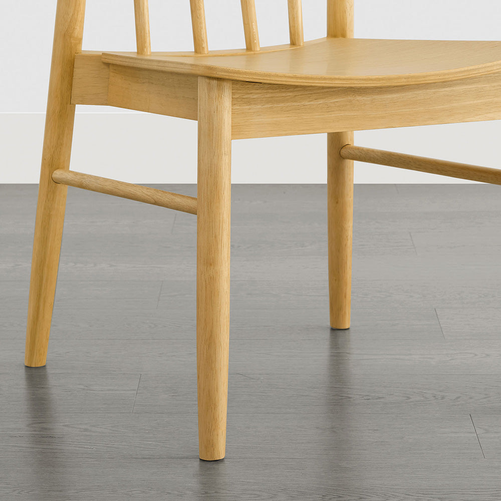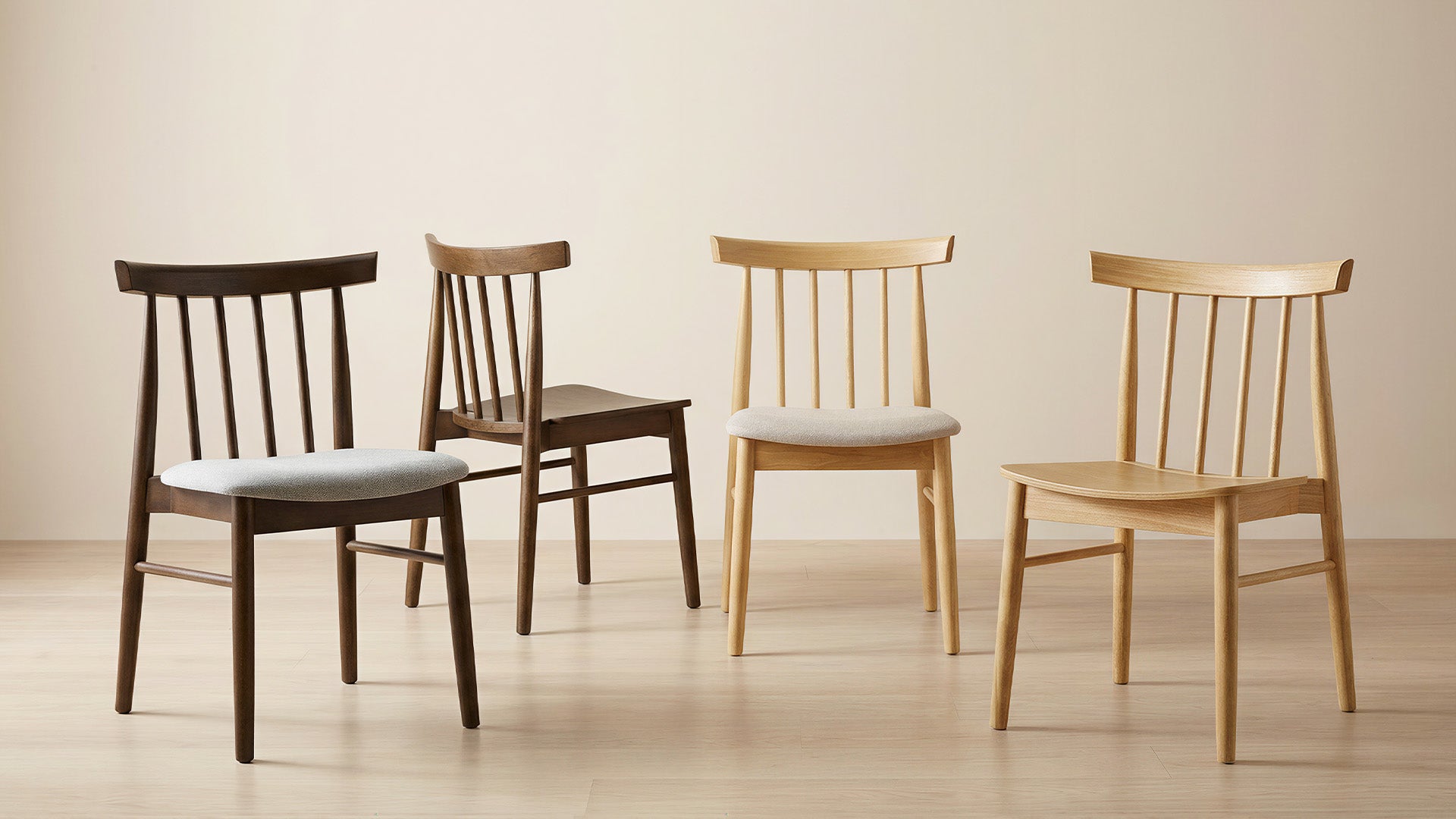 Hanna brings quiet character to the table through a refined spindle-back silhouette and warm wood tones. Rooted in Windsor tradition and shaped for modern dining, this dining chair balances visual lightness with everyday support. Choose a softly upholstered seat for relaxed meals or a sculpted wood seat that highlights natural grain, all supported by a solid wood frame built for lasting use.