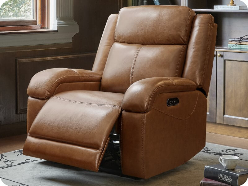 Premium top-grain leather covers all areas you touch, offering a soft, smooth feel and easy maintenance, enhancing the luxurious feel of the recliner.