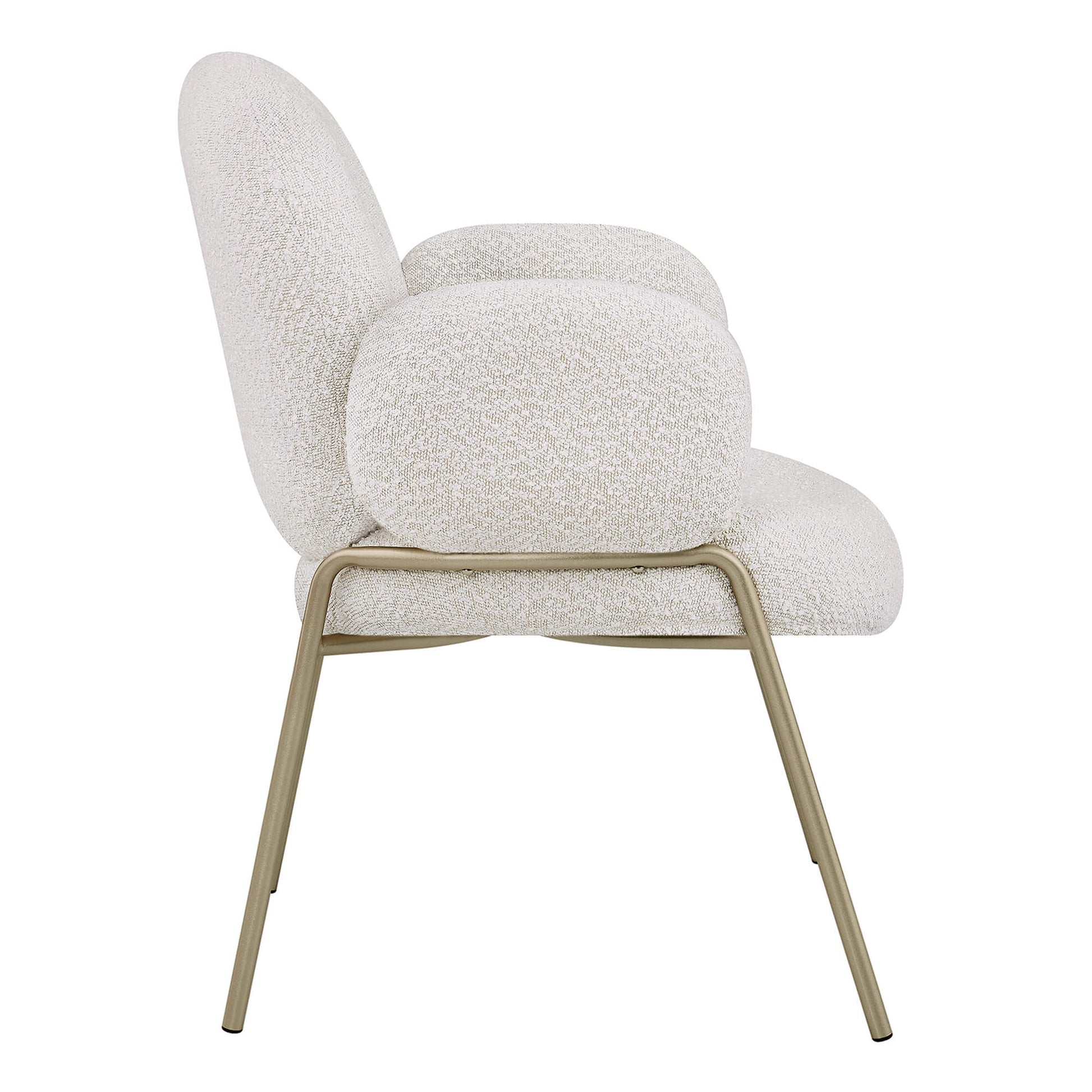 • Refined Modern Balance——Champagne-gold metal legs add sturdy support and a sleek contrast to the chair’s soft, voluminous upholstery for a modern elevated look.
