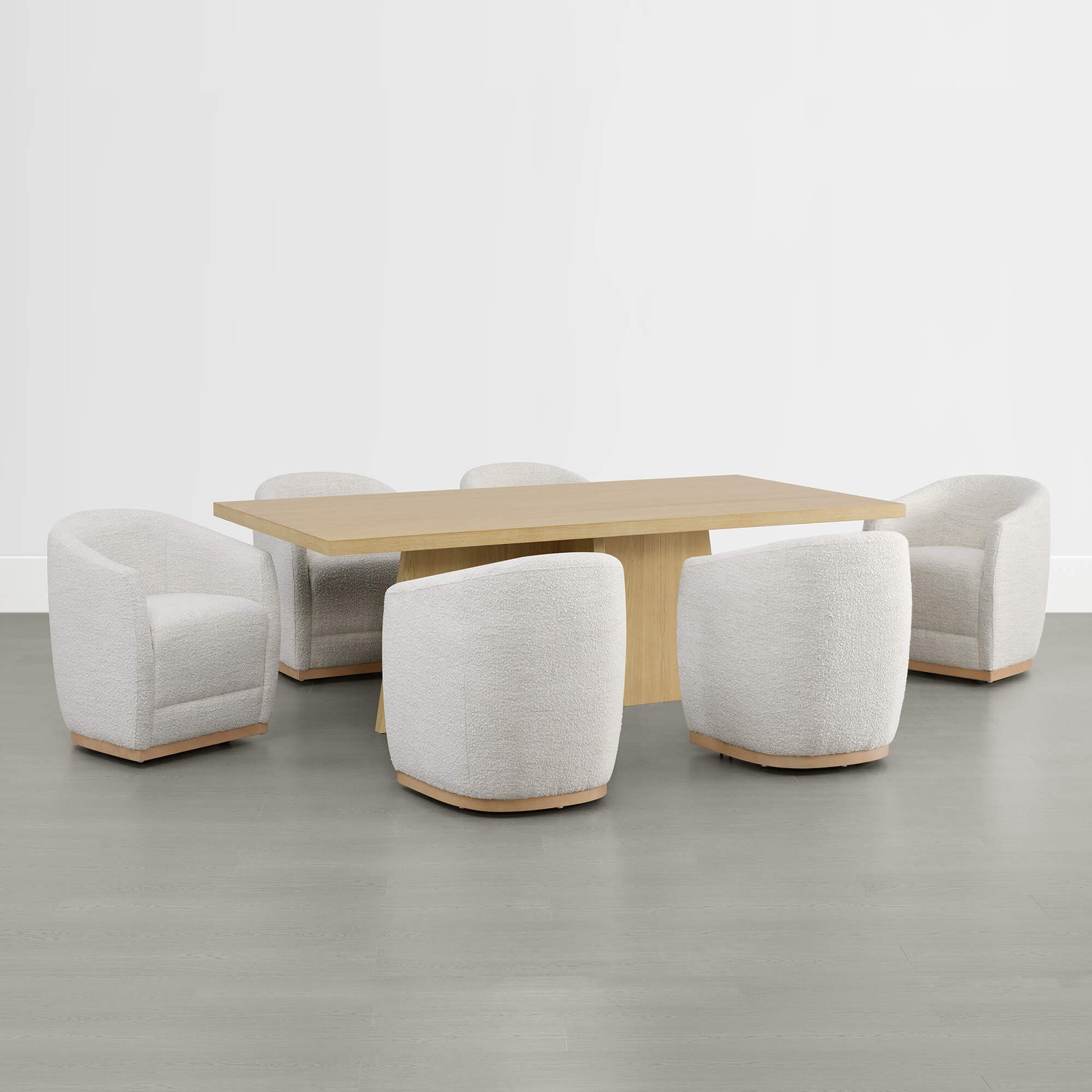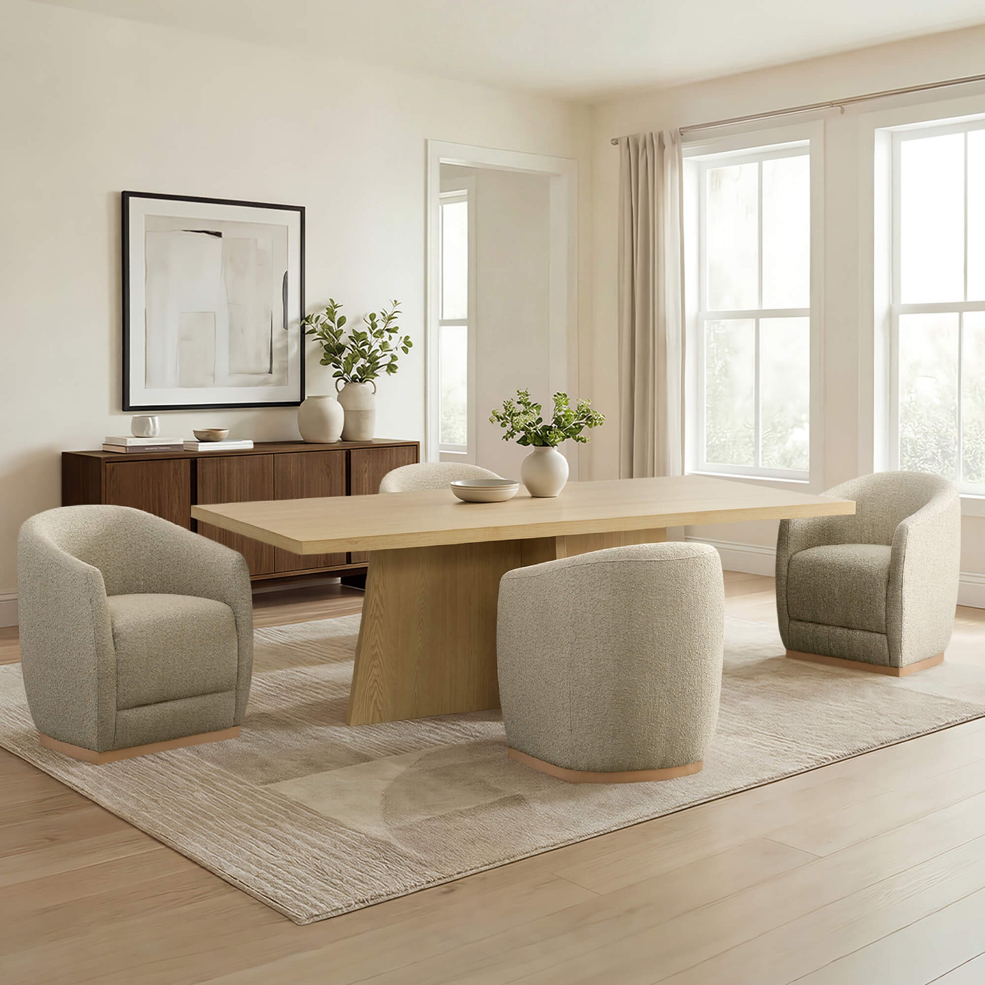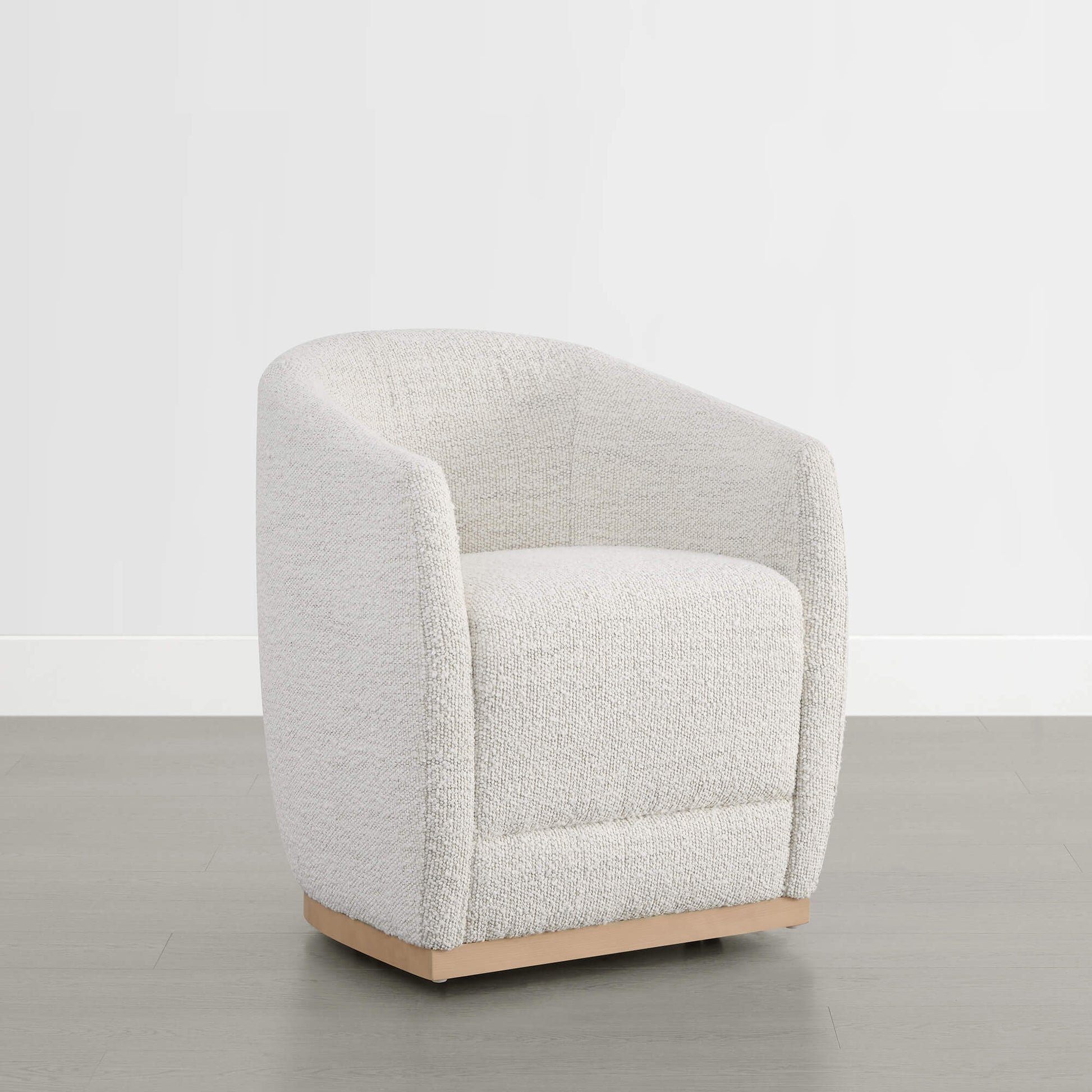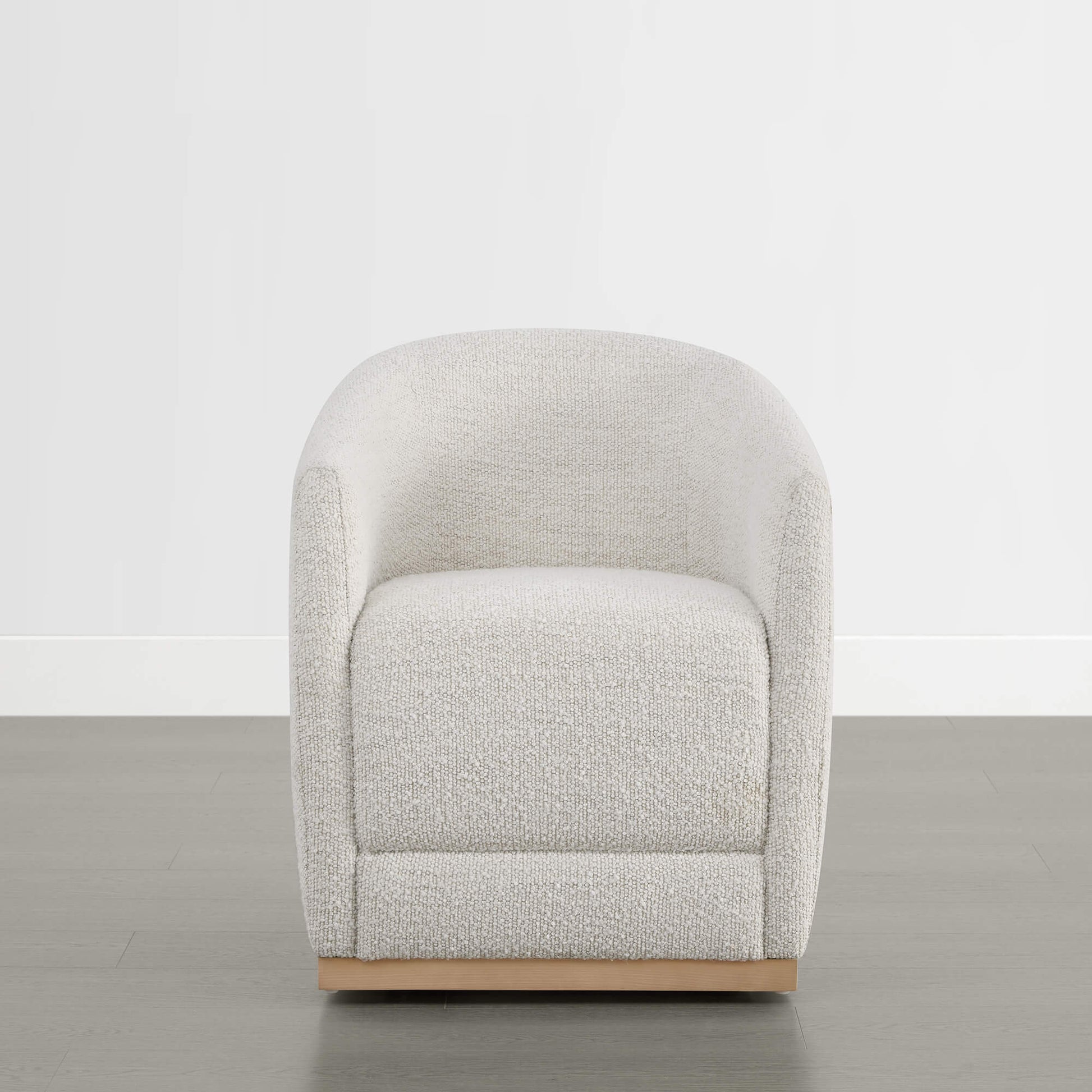 The Mateo dining chair brings movement and comfort to everyday moments. Its sculpted barrel silhouette wraps you in balanced support, while smooth 360° casters glide effortlessly from dining table to desk. Built with kiln-dried hardwood and high-resilient foam, it offers lasting durability with a medium comfort feel. Designed for modern homes that value flexibility, craftsmanship, and thoughtful detail.