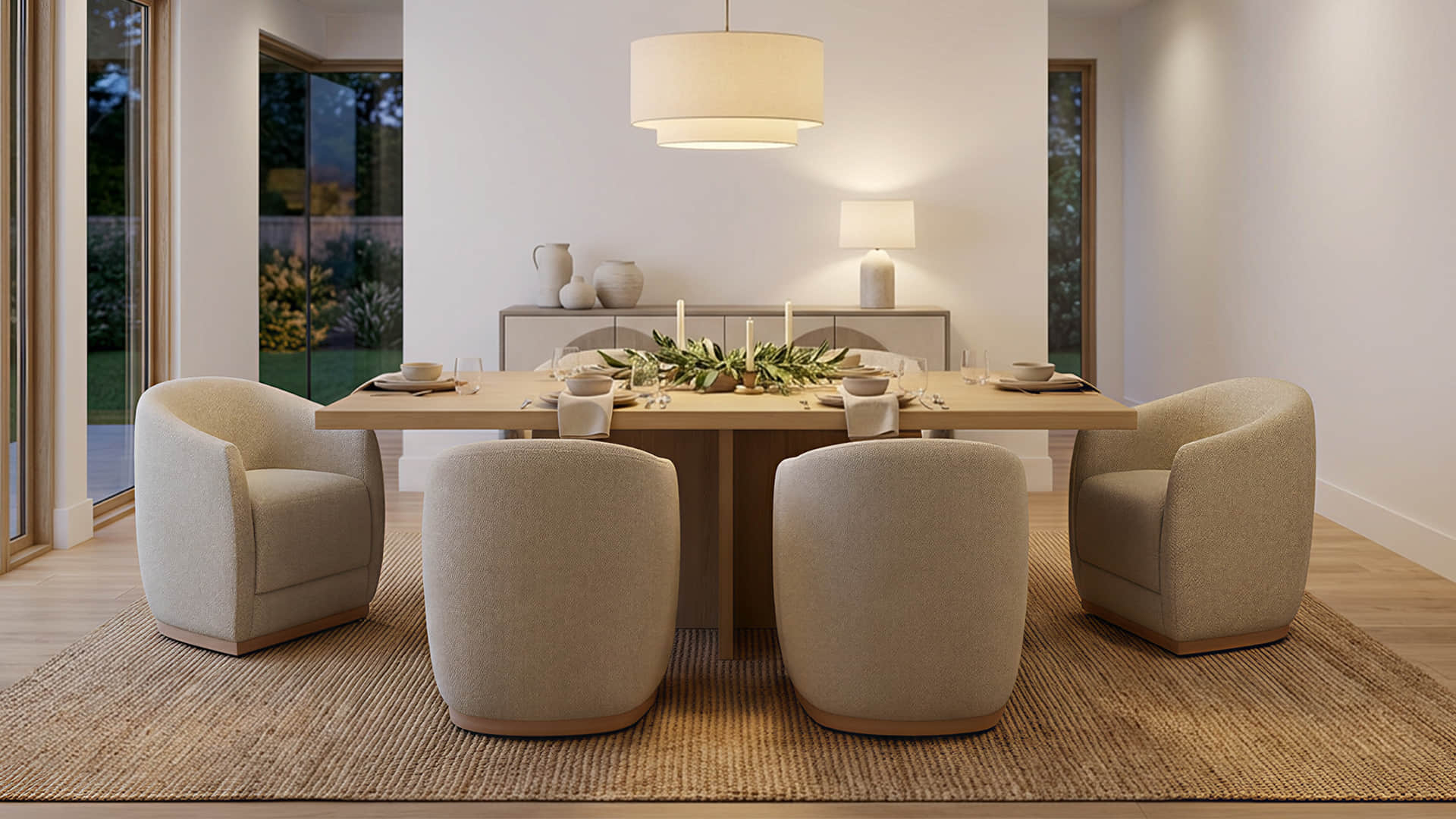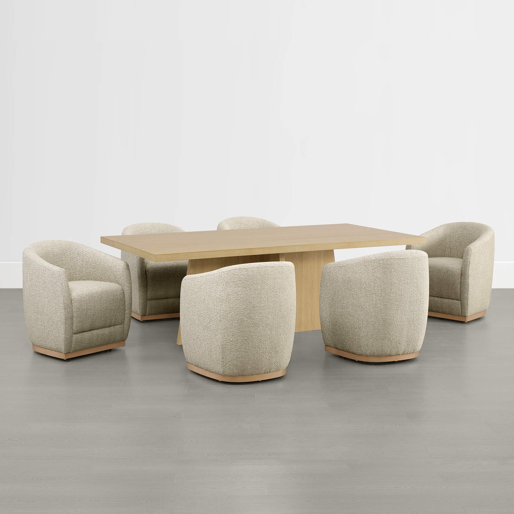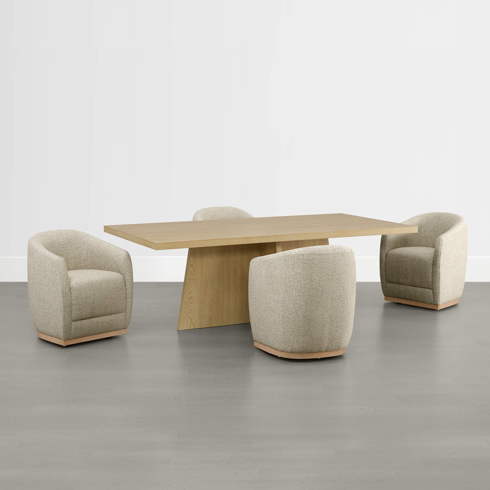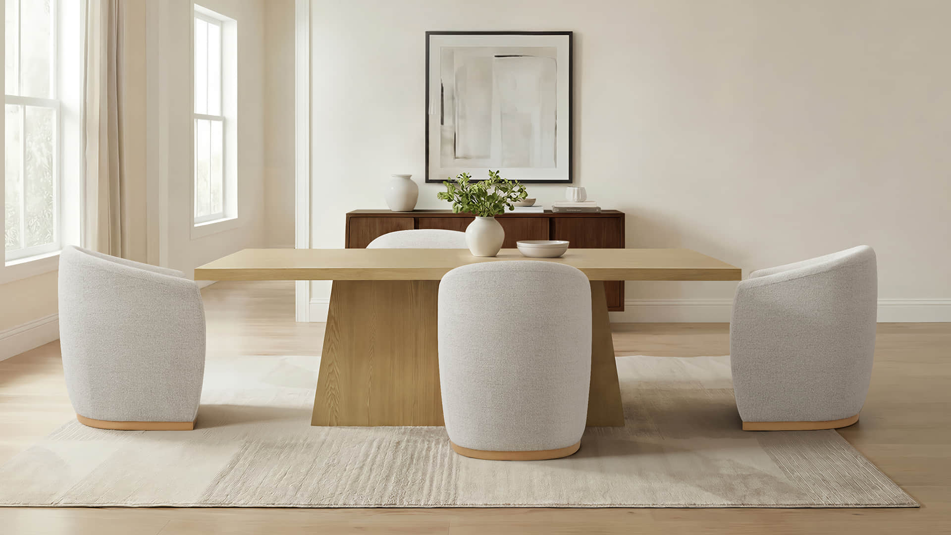 The Mateo dining chair brings movement and comfort to everyday moments. Its sculpted barrel silhouette wraps you in balanced support, while smooth 360° casters glide effortlessly from dining table to desk. Built with kiln-dried hardwood and high-resilient foam, it offers lasting durability with a medium comfort feel. Designed for modern homes that value flexibility, craftsmanship, and thoughtful detail.