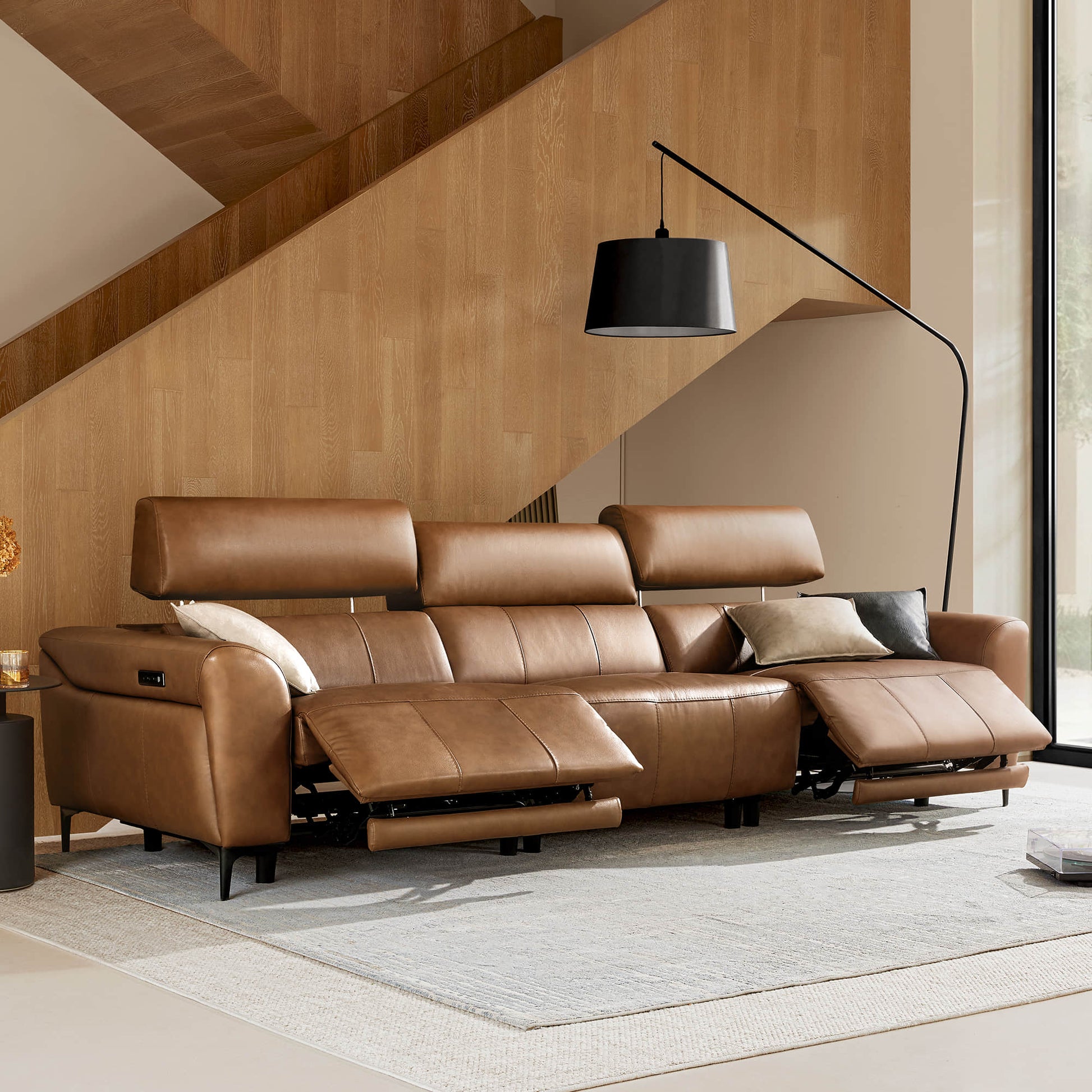 Designed for evenings that slow down and mornings that ease in, the Murphy Premium Dual-Motor Genuine Leather Zero-Wall Power Reclining Sofa brings tailored comfort into everyday living. Wrapped in top-grain leather with a refined high-leg silhouette, it offers customizable reclining, ergonomic head support, and space-smart zero-wall design. Thoughtful craftsmanship meets modern function, creating a sofa that feels considered, supportive, and effortlessly livable.